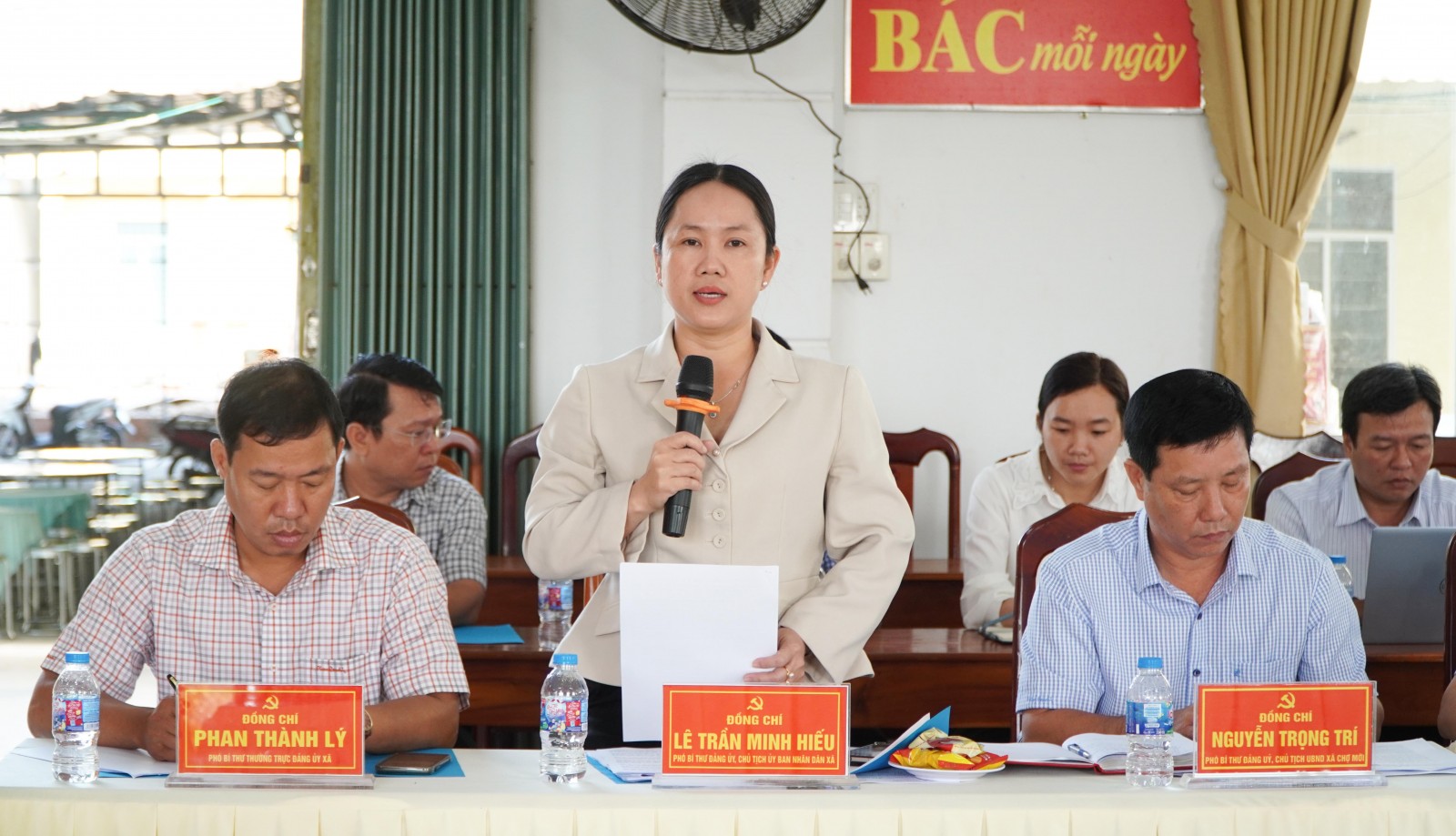 Phó Bí thư Đảng ủy, Chủ tịch UBND xã Long Điền Lê Trần Minh Hiếu báo cáo tại buổi làm việc.