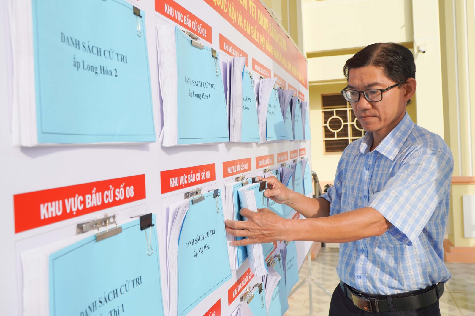 Cán bộ xã Long Điền niêm yết danh sách cử tri tham gia bầu cử đại biểu Quốc hội khóa XVI và đại biểu HĐND các cấp nhiệm kỳ 2026 - 2031.