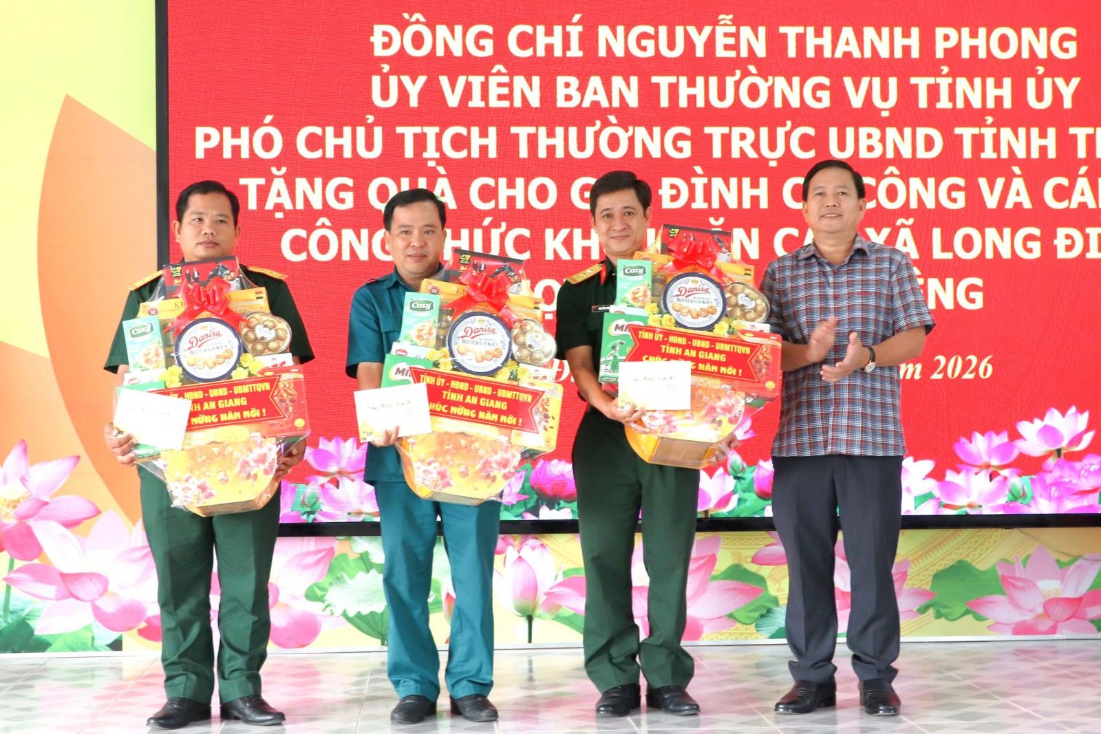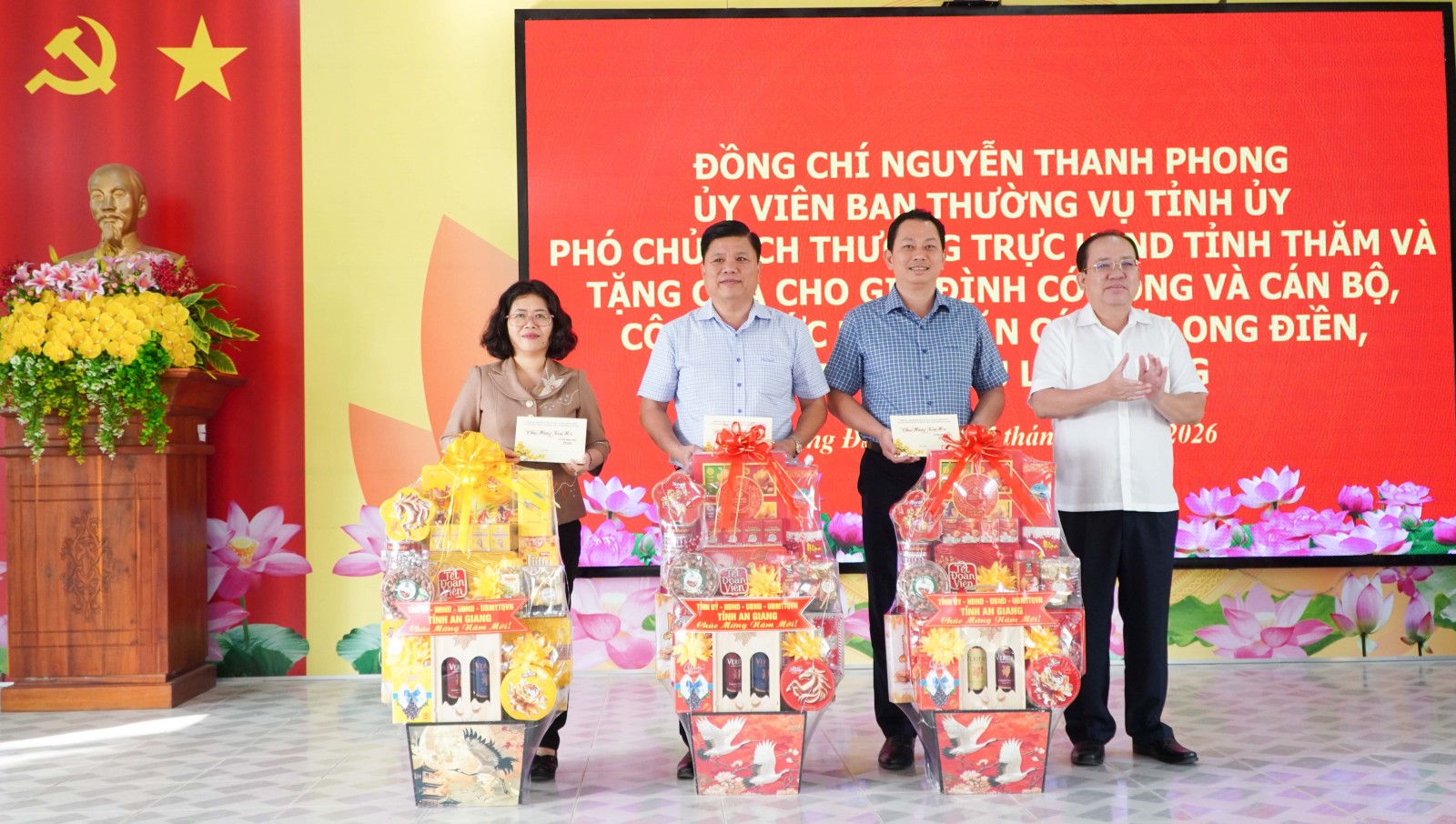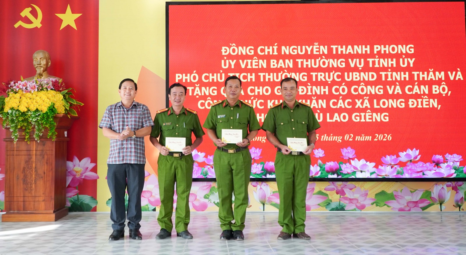 Dịp này, Phó Chủ tịch Thường trực UBND tỉnh Nguyễn Thanh Phong cùng đoàn công tác chúc tết, tặng quà Đảng ủy, HĐND, UBND, Ủy ban MTTQ Việt Nam xã, Công an, Ban Chỉ huy Quân sự xã, cùng 3 gia đình chính sách và 9 cán bộ, công chức có hoàn cảnh khó khăn của các xã: Long Điền, Chợ Mới, Cù Lao Giêng.
