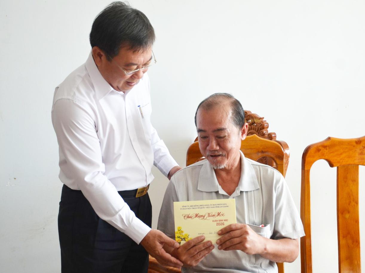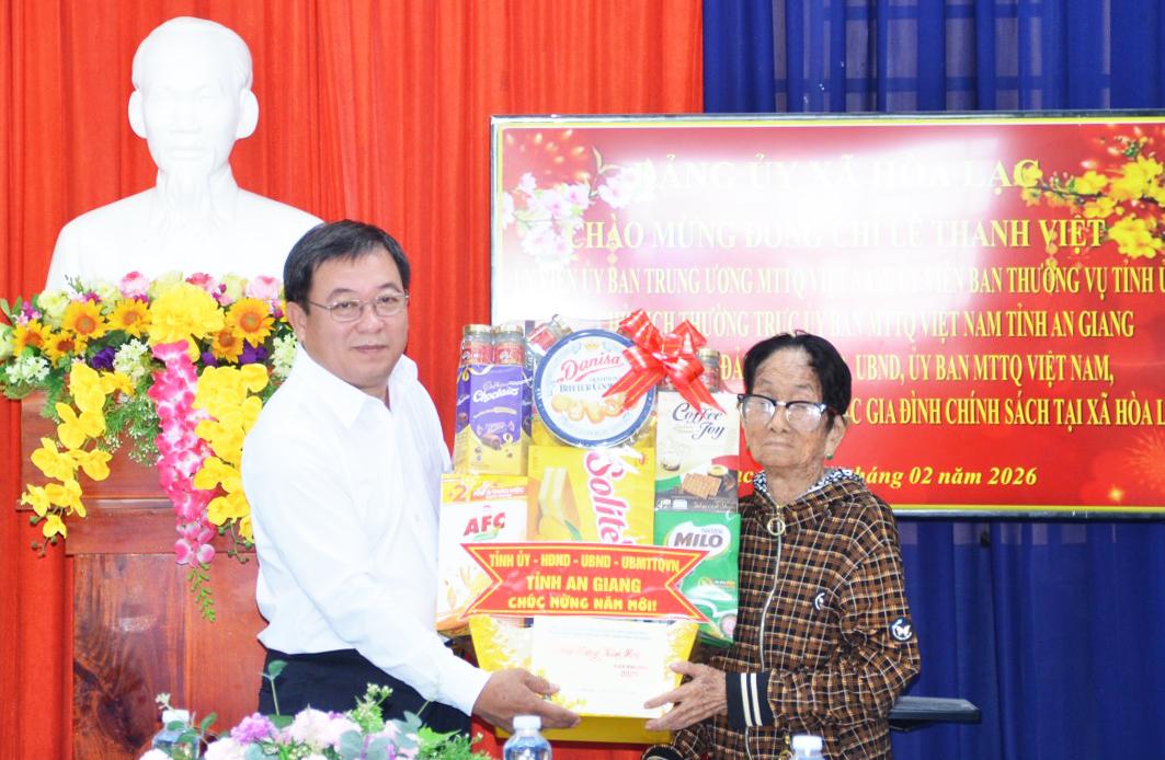 Phó Chủ tịch Thường trực Ủy ban MTTQ Việt Nam tỉnh An Giang Lê Thanh Việt chúc tết, tặng quà gia đình chính sách tại xã Hòa Lạc.