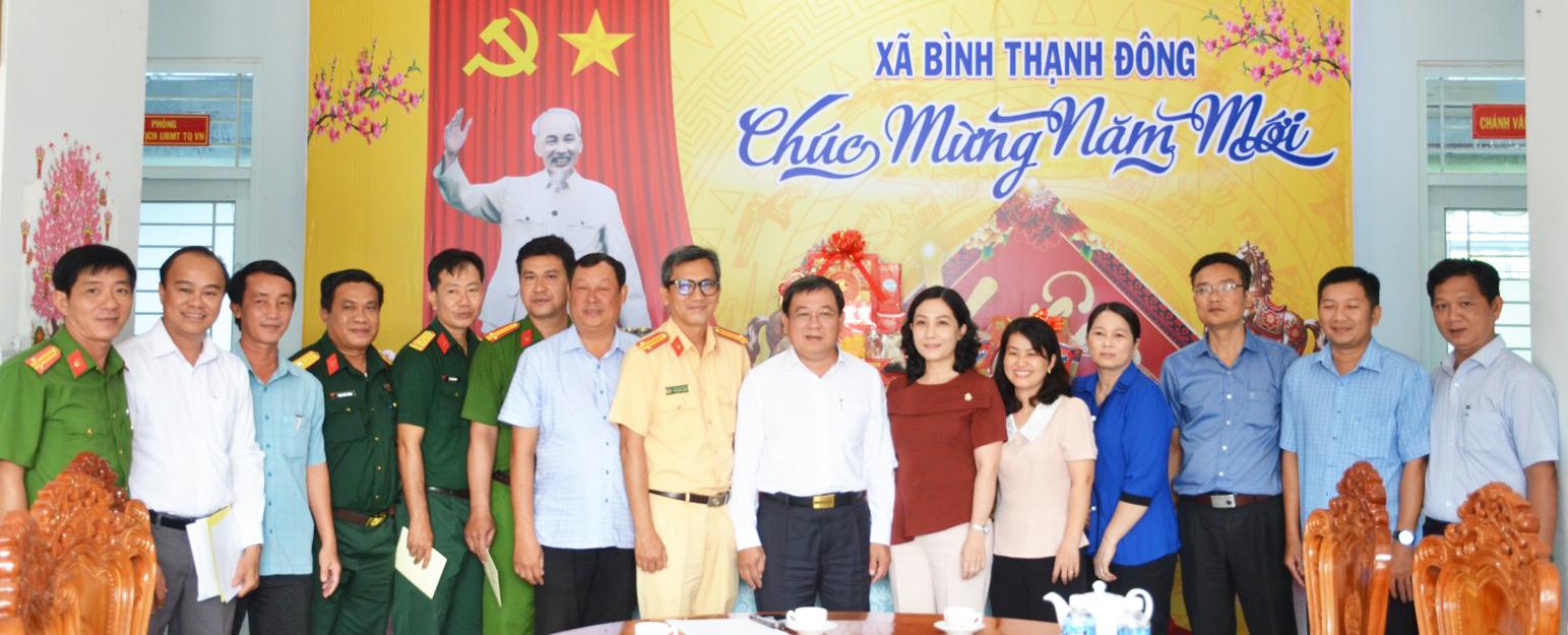 Đoàn công tác của tỉnh chụp ảnh cùng Đảng ủy, HĐND, UBND, Ủy ban MTTQ Việt Nam xã và các lực lượng vũ trang xã Bình Thạnh Đông.