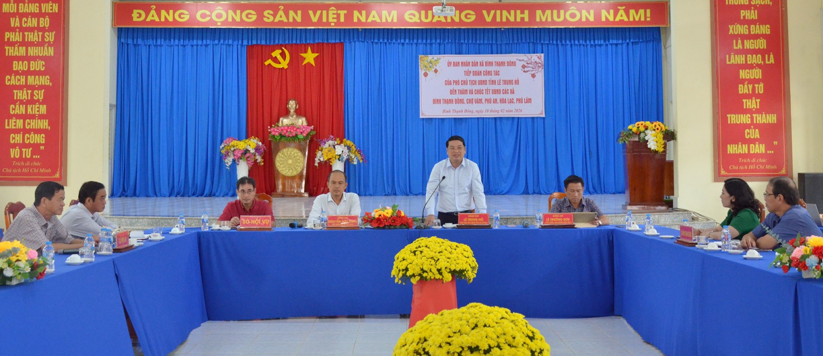 Nhân dịp Tết Nguyên đán Bính Ngọ, Phó Chủ tịch UBND tỉnh An Giang Lê Trung Hồ gửi lời chúc mừng năm mới đến Đảng bộ, chính quyền và Nhân dân các xã, chúc các địa phương hoàn thành xuất sắc nhiệm vụ năm 2026 theo mục tiêu, nghị quyết đã đề ra.