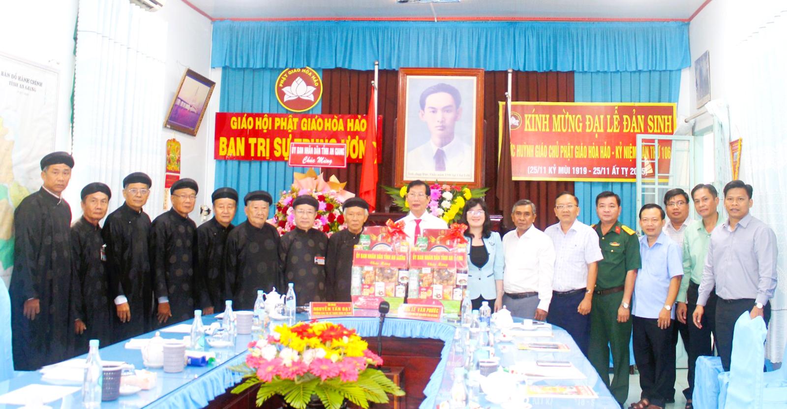 Cùng ngày, đoàn công tác do Phó Giám đốc Sở Dân tộc và Tôn giáo tỉnh An Giang Danh Lắm làm trưởng đoàn đã đến thăm, chúc mừng Ban Phụng tự Tổ đình Đức Giáo chủ Phật giáo Hòa Hảo dịp Lễ kỷ niệm 106 năm Ngày Đản sinh Giáo chủ Phật giáo Hòa Hảo. Ông Danh Lắm ân cần thăm hỏi, chúc Ban Phụng tự, thân tộc và tín đồ Phật giáo Hòa Hảo luôn mạnh khỏe, an lạc và đoàn kết.