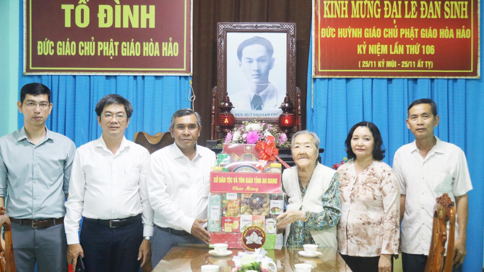 Sở Dân tộc và Tôn giáo tỉnh An Giang tặng quà Ban Phụng tự Tổ đình Đức Giáo chủ Phật giáo Hòa Hảo.