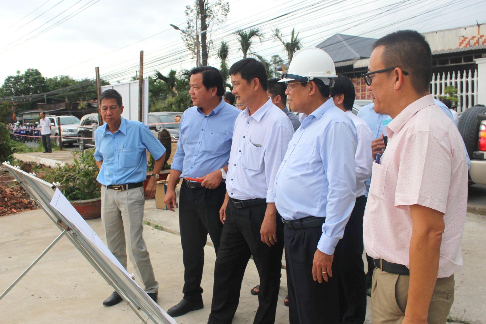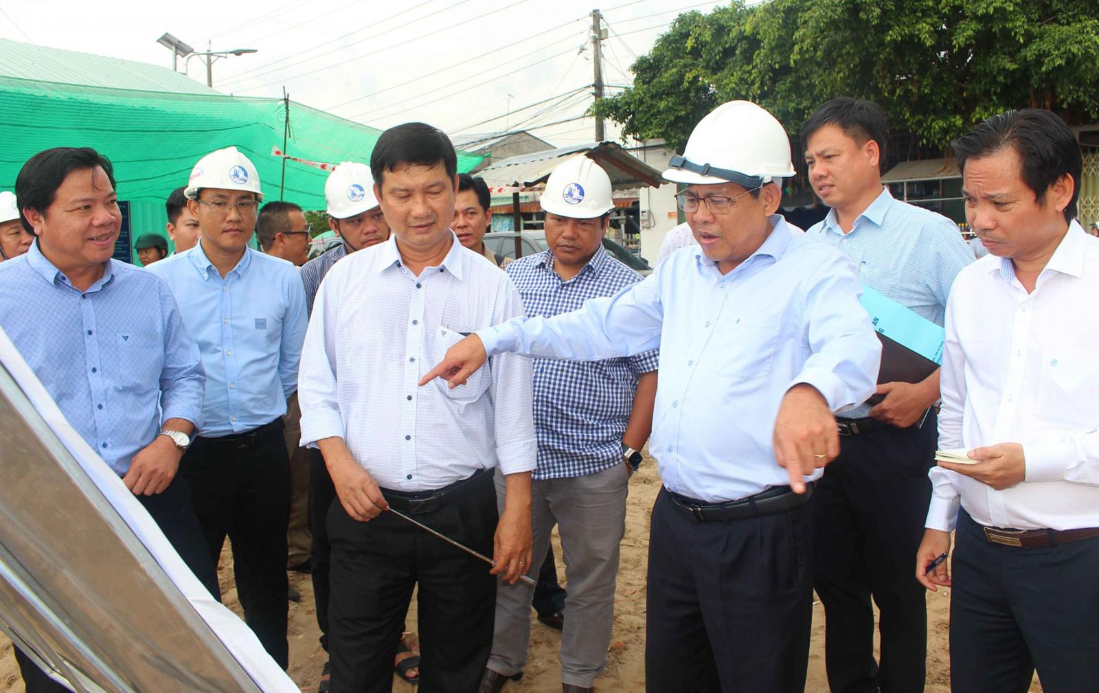 Đồng chí Ngô Công Thức kiểm tra Dự án Xử lý sạt lở bờ rạch Ông Chưởng trên Tỉnh lộ 946, thuộc tổ 20, ấp Long Định, xã Long Kiến.