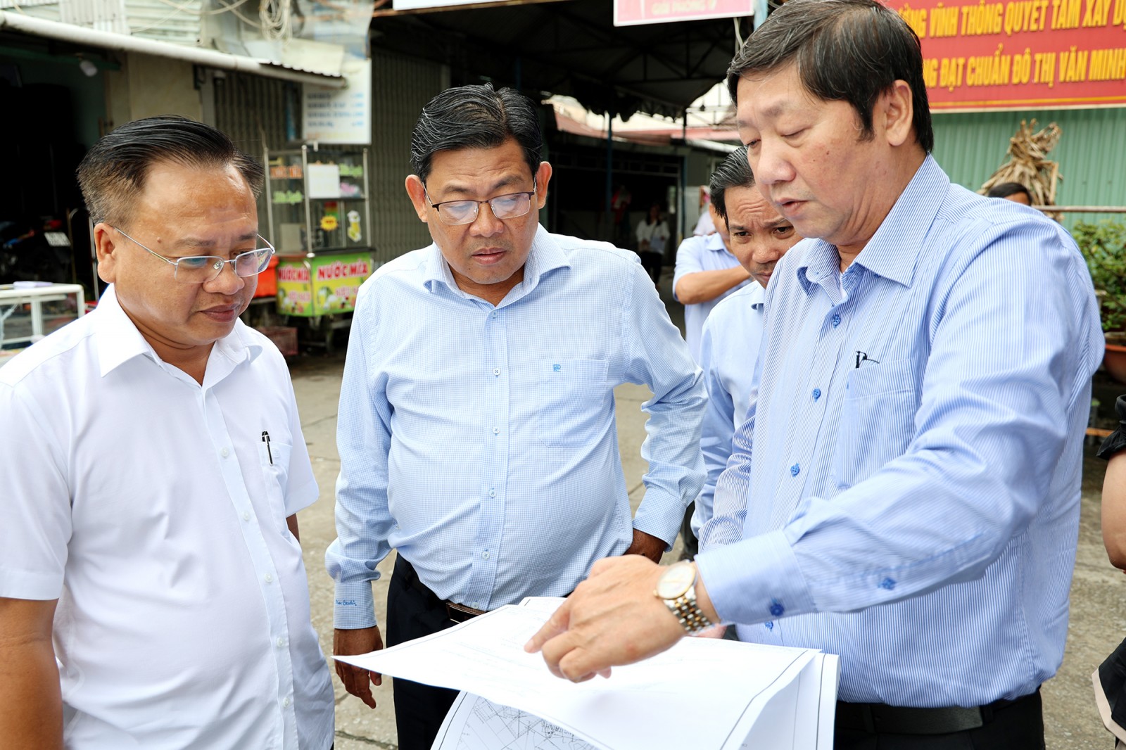 Phó Chủ tịch UBND tỉnh An Giang Ngô Công Thức khảo sát tình hình thực hiện công trình cải tạo, nâng cấp tuyến Đường tỉnh 961.