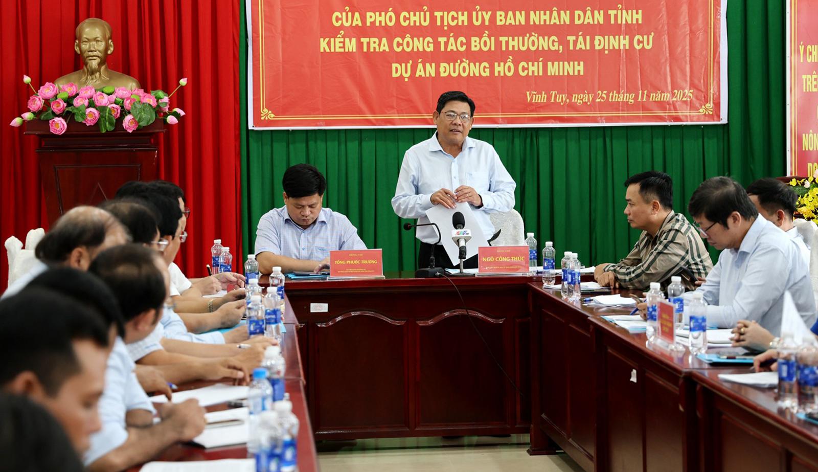 Phát biểu tại buổi làm việc với các sở, ngành, cơ quan, đơn vị và địa phương, Phó Chủ tịch UBND tỉnh An Giang Ngô Công Thức yêu cầu Khu Quản lý đường bộ IV đẩy nhanh tiến độ sửa chữa các đoạn hư hỏng của Quốc lộ 61; giao Sở Xây dựng kiến nghị Cục Đường bộ Việt Nam sớm phê duyệt Dự án Sửa chữa nền, mặt đường, hệ thống thoát nước và hoàn thiện hệ thống an toàn giao thông đoạn Km67+174 - Km77+ 250.