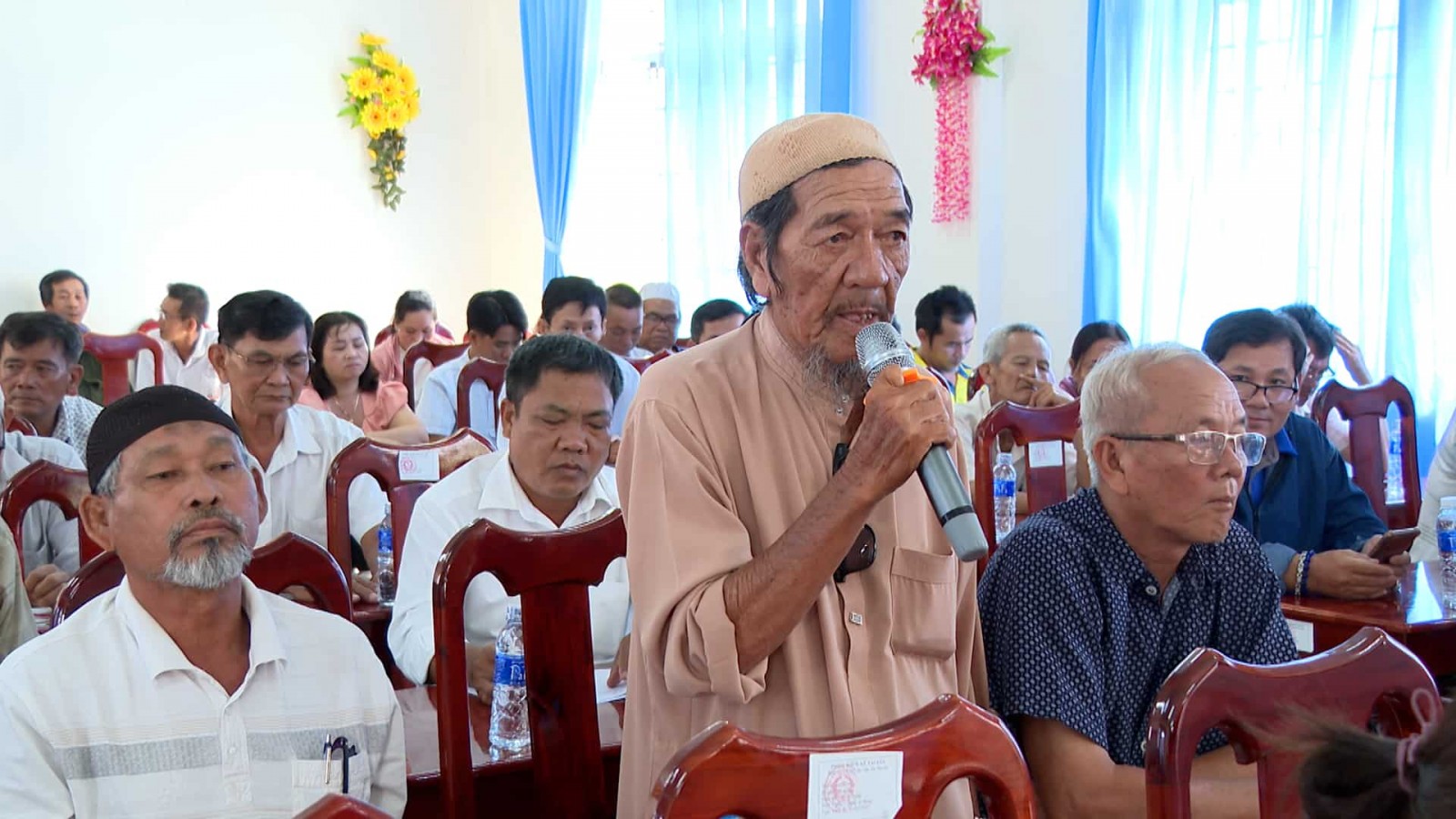 Cử tri xã Vĩnh Hậu nêu ý kiến tại buổi tiếp xúc.