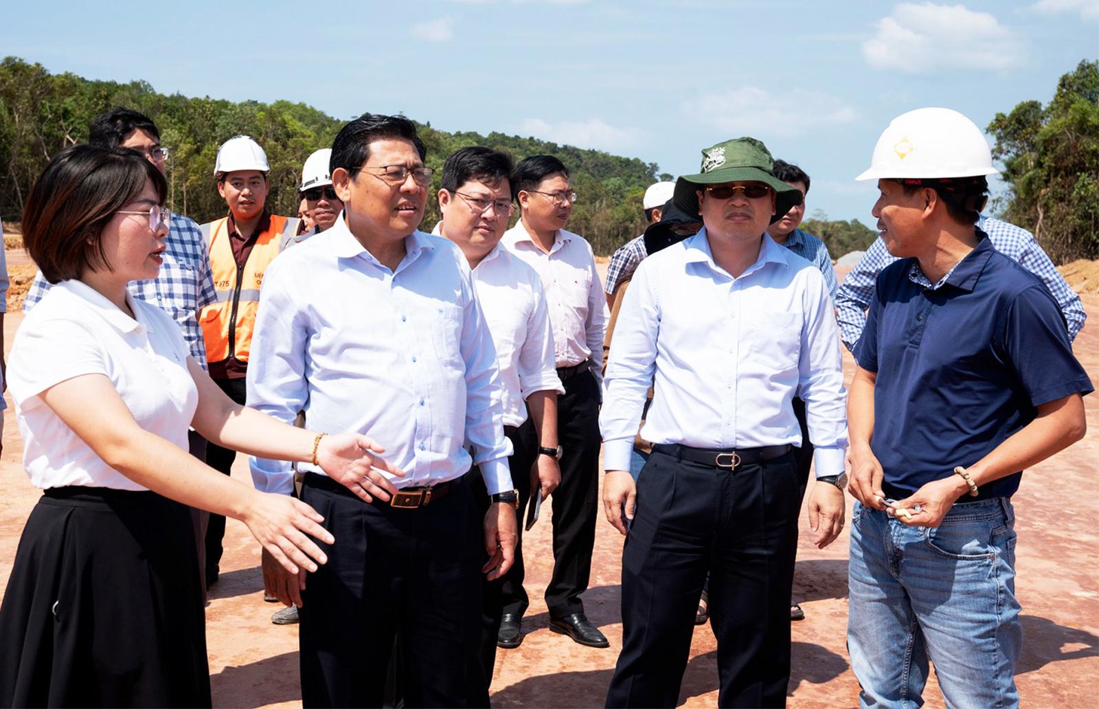 Đoàn công tác đã kiểm tra tiến độ thi công và thăm hỏi, động viên công nhân đang làm việc các dự án: Đại lộ APEC, Đường tỉnh 975, Trung tâm tổ chức Hội nghị APEC, khu tái định cư Hồ Suối Lớn.