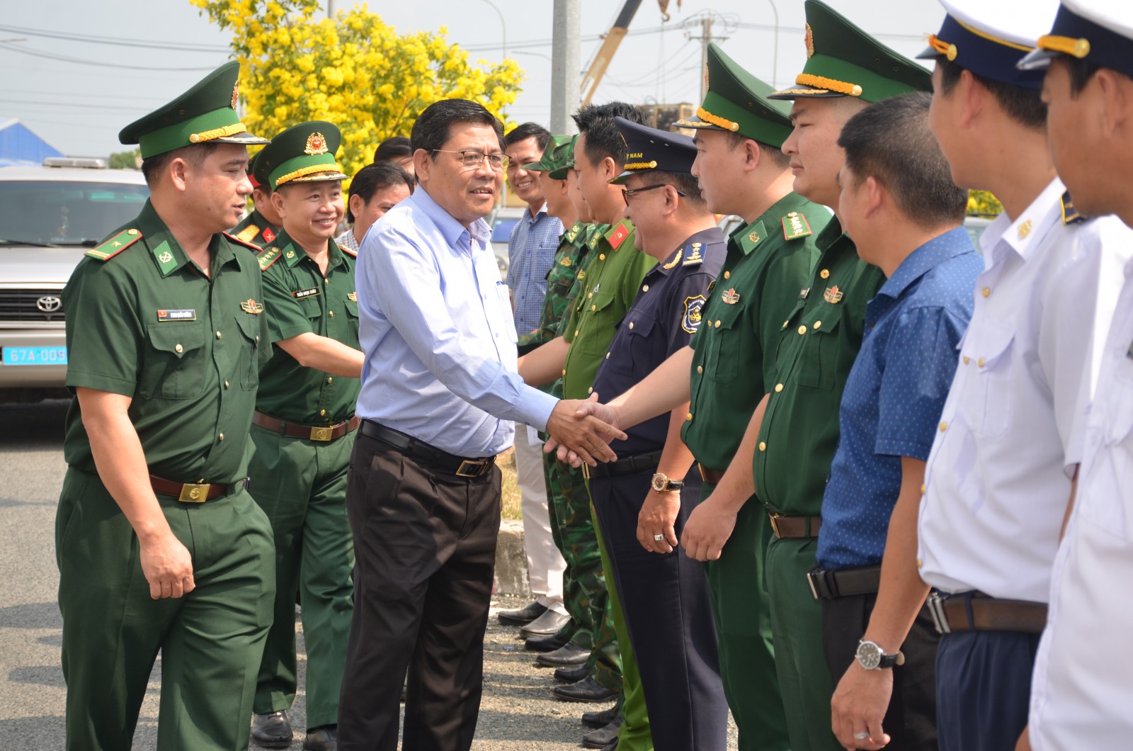 Phó Chủ tịch UBND tỉnh An Giang Ngô Công Thức thăm hỏi cán bộ, chiến sĩ làm việc tại Cửa khẩu chính Khánh Bình.
