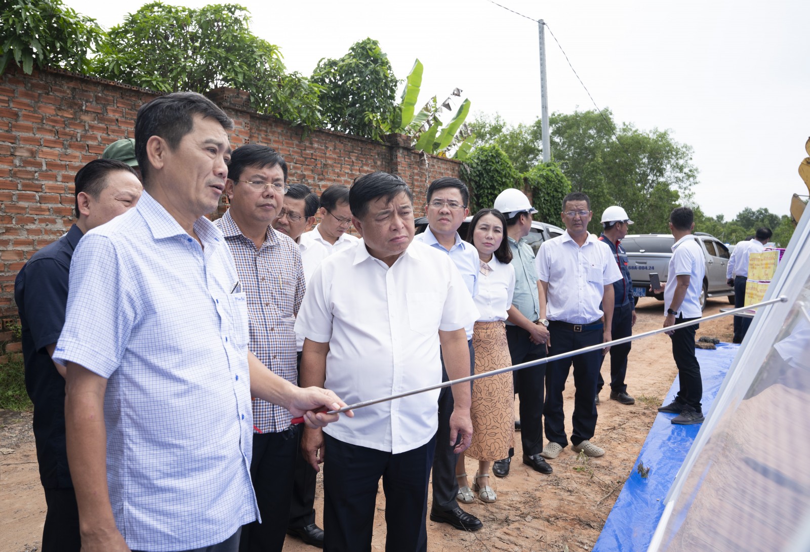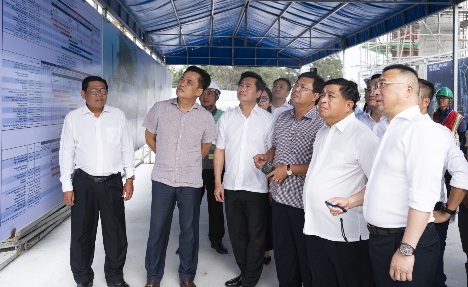 Phó Thủ tướng Chính phủ Nguyễn Chí Dũng và Bí thư Tỉnh ủy An Giang Nguyễn Tiến Hải, cùng lãnh đạo bộ, ngành Trung ương và tỉnh An Giang kiểm tra tiến độ thi công Trung tâm tổ chức Hội nghị APEC (Ảnh: TRUNG HIẾU)