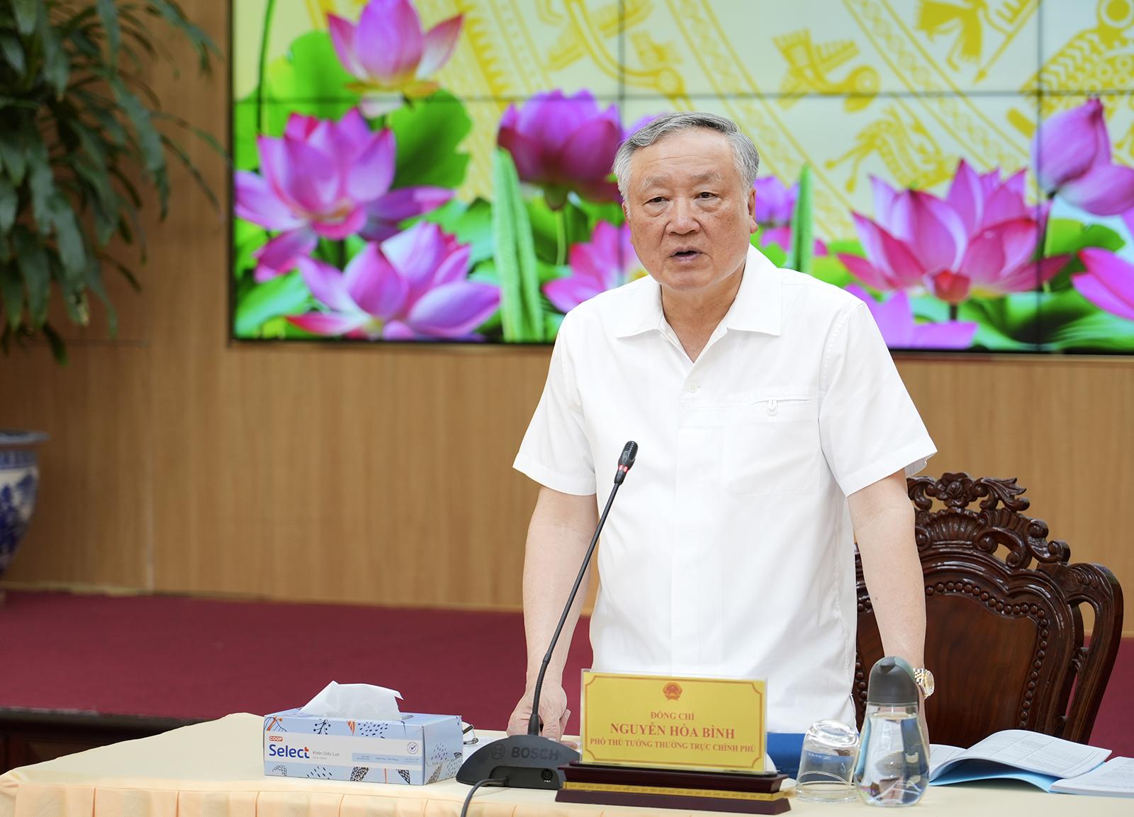 Phó Thủ tướng Thường trực Chính phủ Nguyễn Hòa Bình phát biểu tại buổi làm việc.