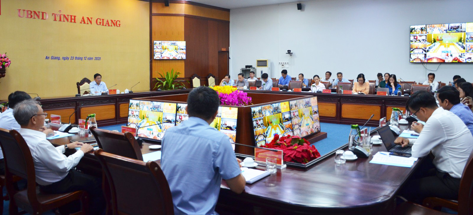 Quang cảnh hội nghị tại điểm cầu UBND tỉnh An Giang.