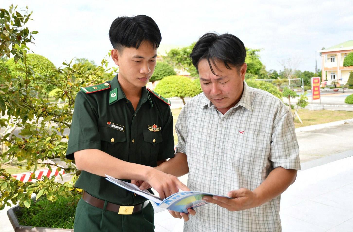 Cán bộ Đồn Biên phòng Lình Huỳnh tuyên truyền chống khai thác IUU đến ngư dân.
