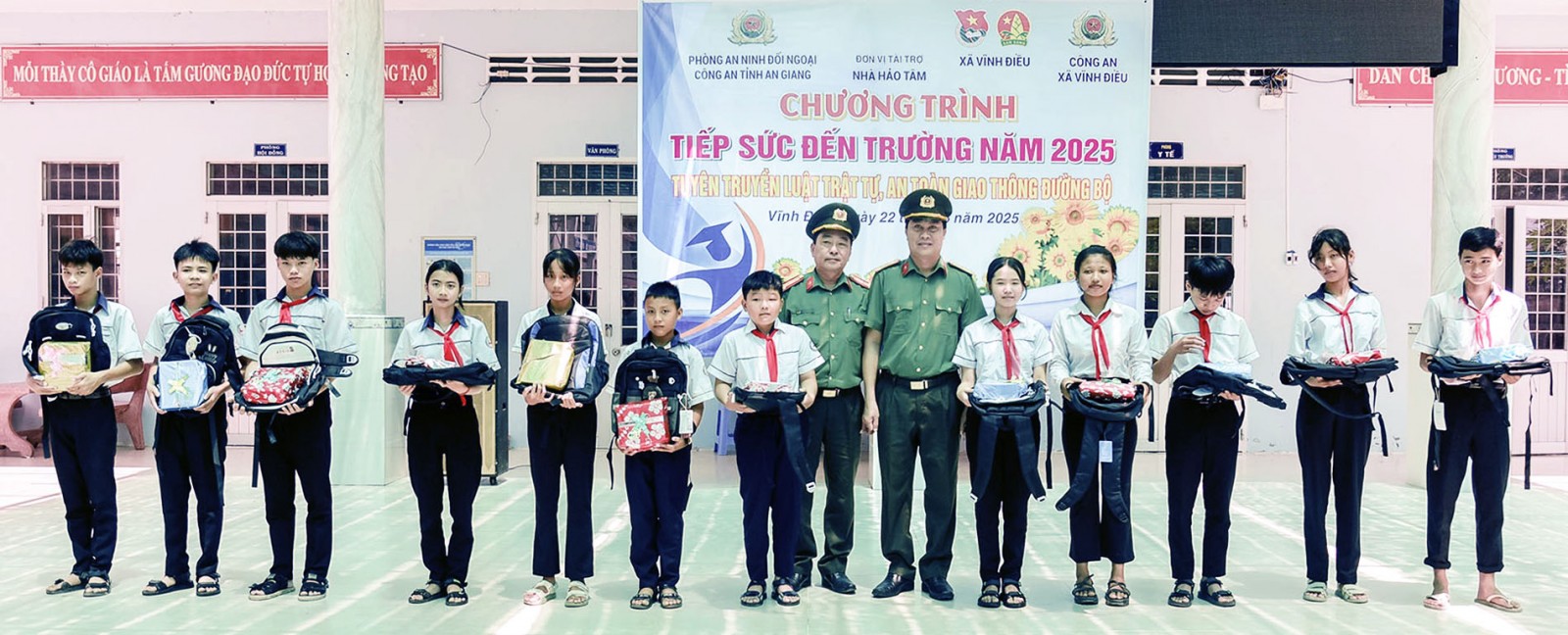 Ngày 22/8, Phòng An ninh đối ngoại (Công an tỉnh An Giang) tổ chức tuyên truyền Luật trật tự, an toàn giao thông đường bộ và trao tặng quà cho học sinh các trường học trên địa bàn xã Vĩnh Điều (tỉnh An Giang).