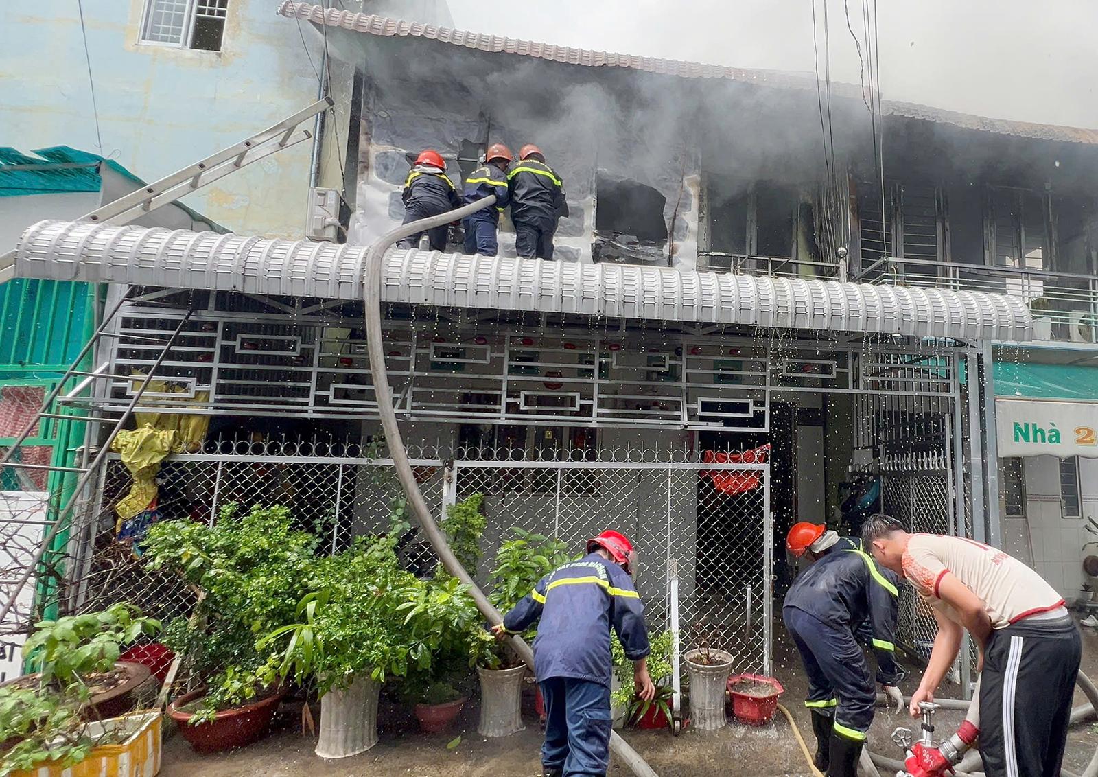 Vụ hỏa hoạn xảy ra trên đường Thái Phiên, phường Bình Đức thiêu rụi hoàn toàn 1 căn nhà và 2 căn bị cháy sém. Ảnh: NGUYỄN HƯNG