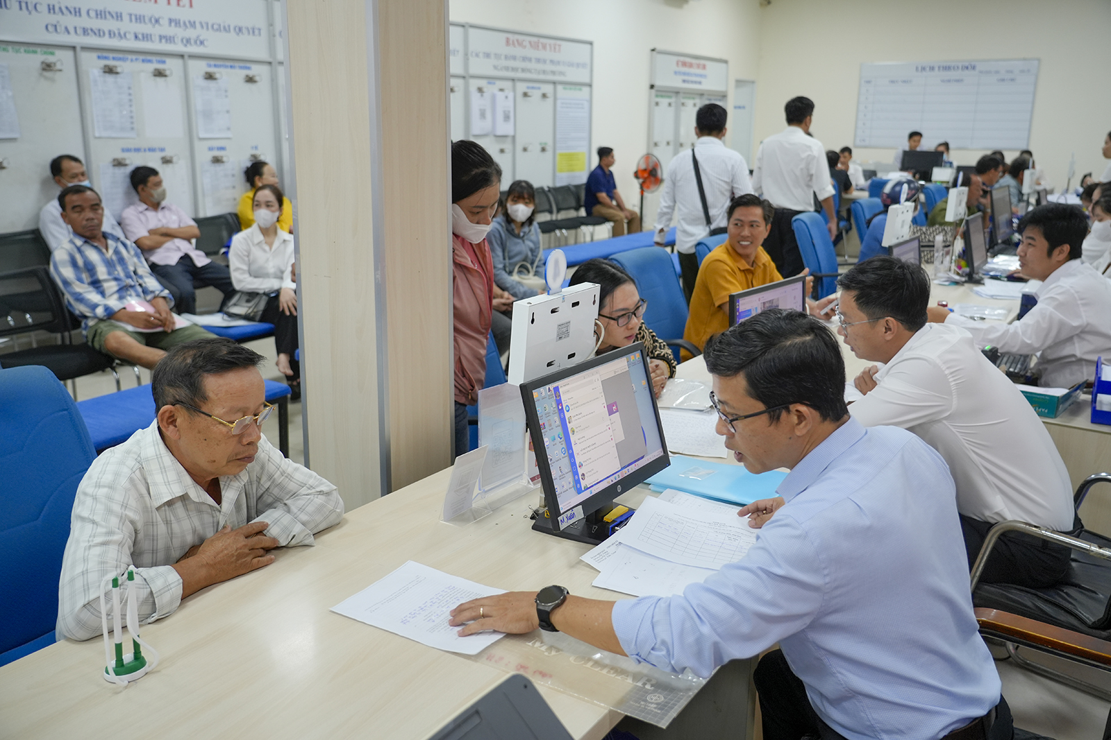 Công dân đến làm thủ tục hành chính tại Trung tâm Phục vụ hành chính công đặc khu Phú Quốc.