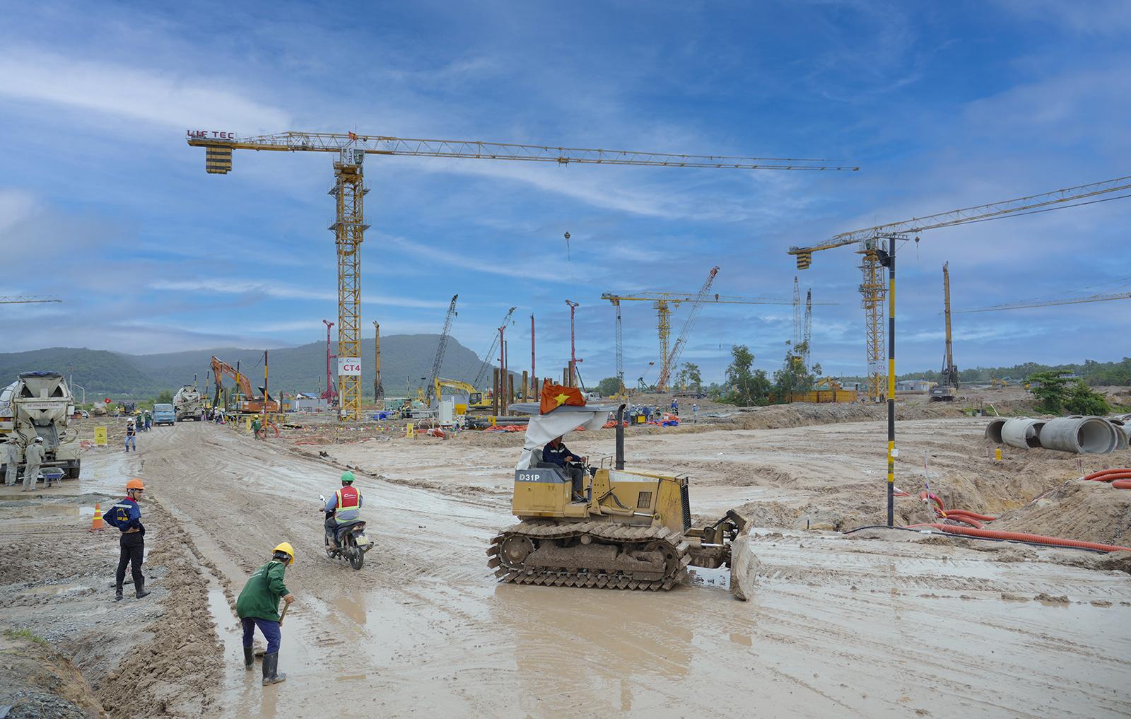 Kỹ sư và công nhân thi công dự án mở rộng Cảng hàng không quốc tế Phú Quốc.