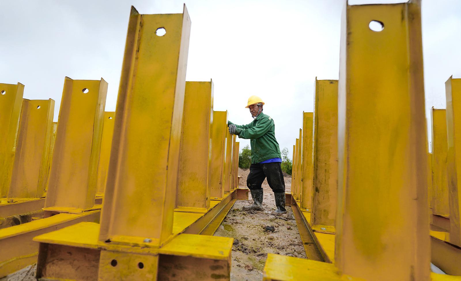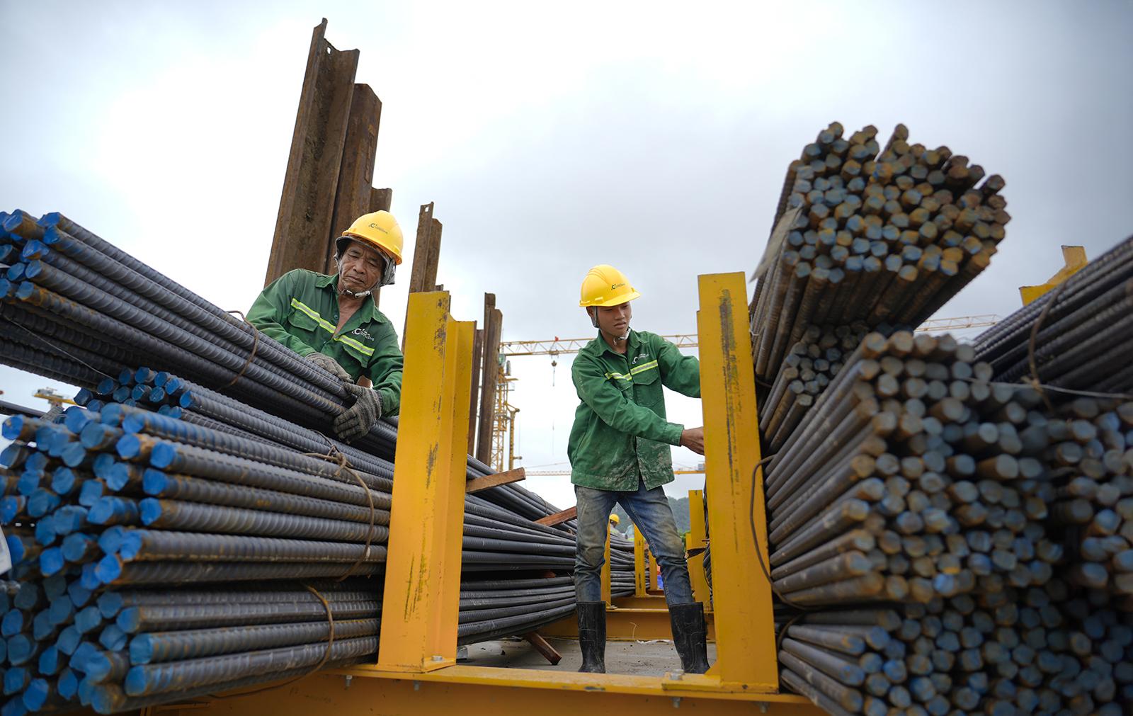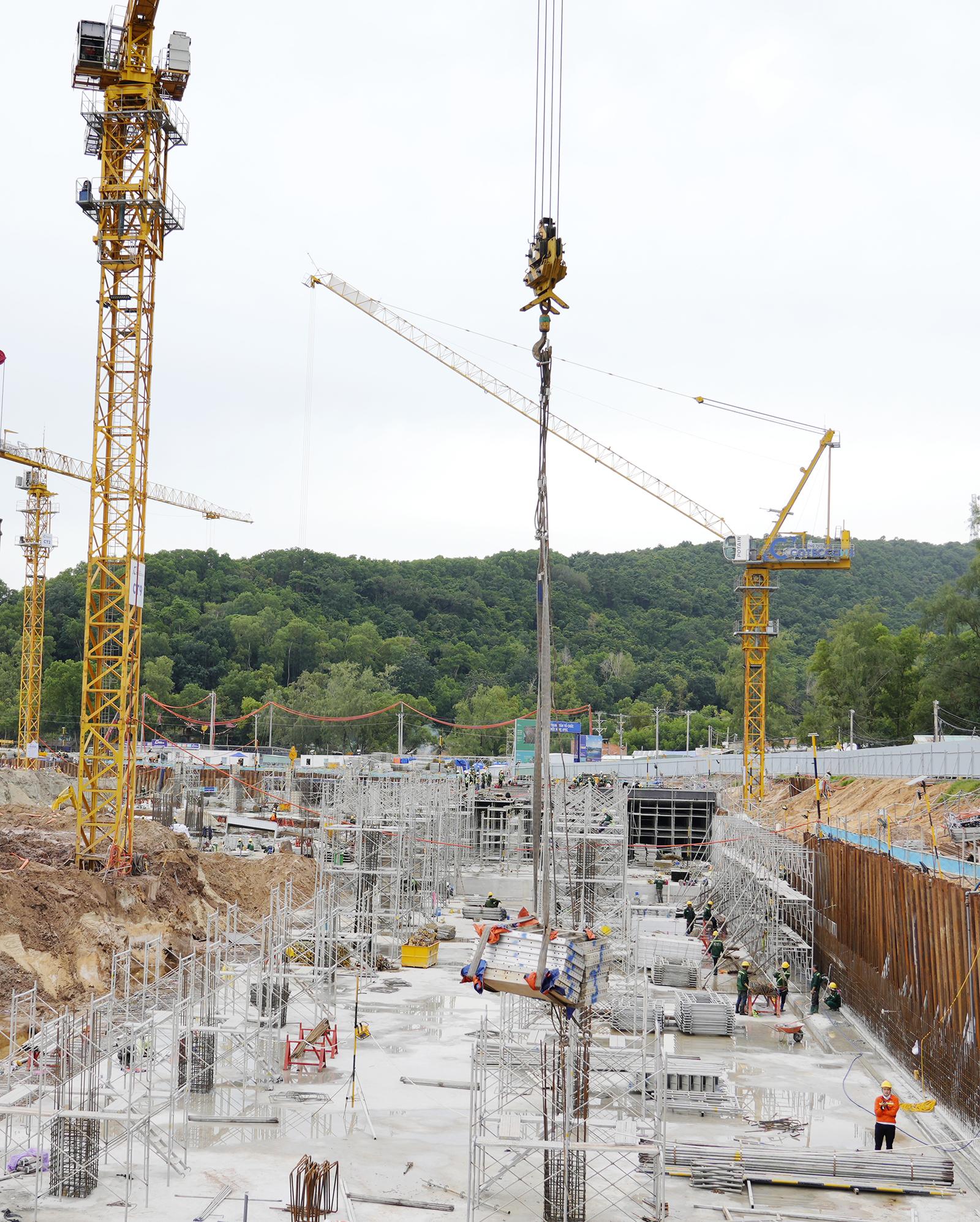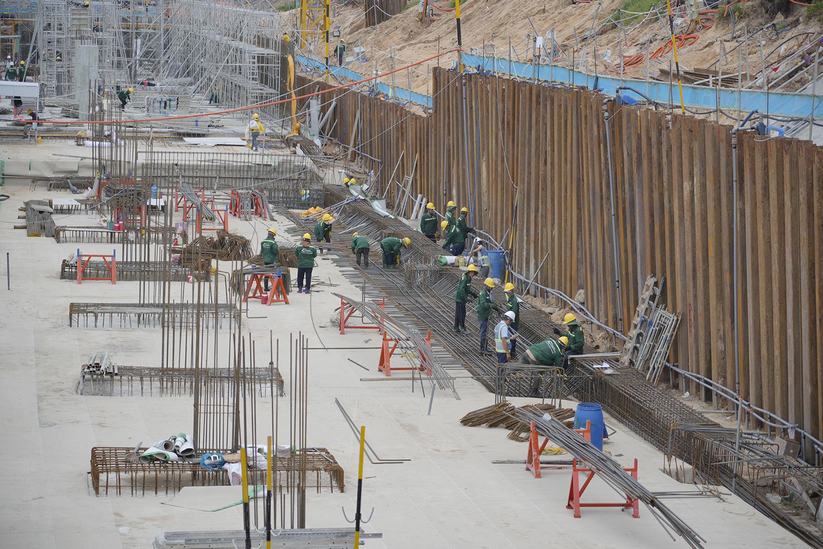 Công nhân thi công công trình Trung tâm tổ chức Hội nghị APEC 2027.