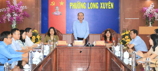 Tỉnh ủy viên, Bí thư Đảng ủy phường Long Xuyên Lâm Quang Thi; Phó Bí thư Thường trực Đảng ủy phường Võ Thị Xuân Kiều và Phó Bí thư Đảng ủy, Chủ tịch UBND phường Long Xuyên Đoàn Thị Hương Hà chủ trì buổi họp mặt.