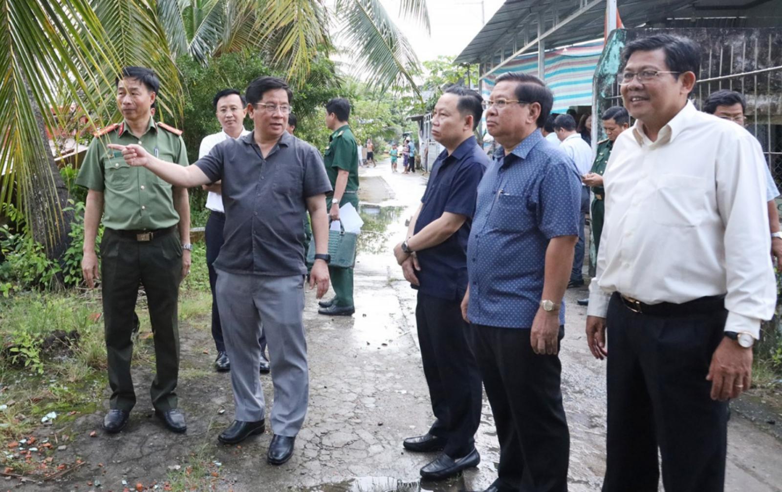 Chủ tịch UBND tỉnh An Giang Hồ Văn Mừng (thứ 2, từ trái qua) kiểm tra thực tế tàu cá.