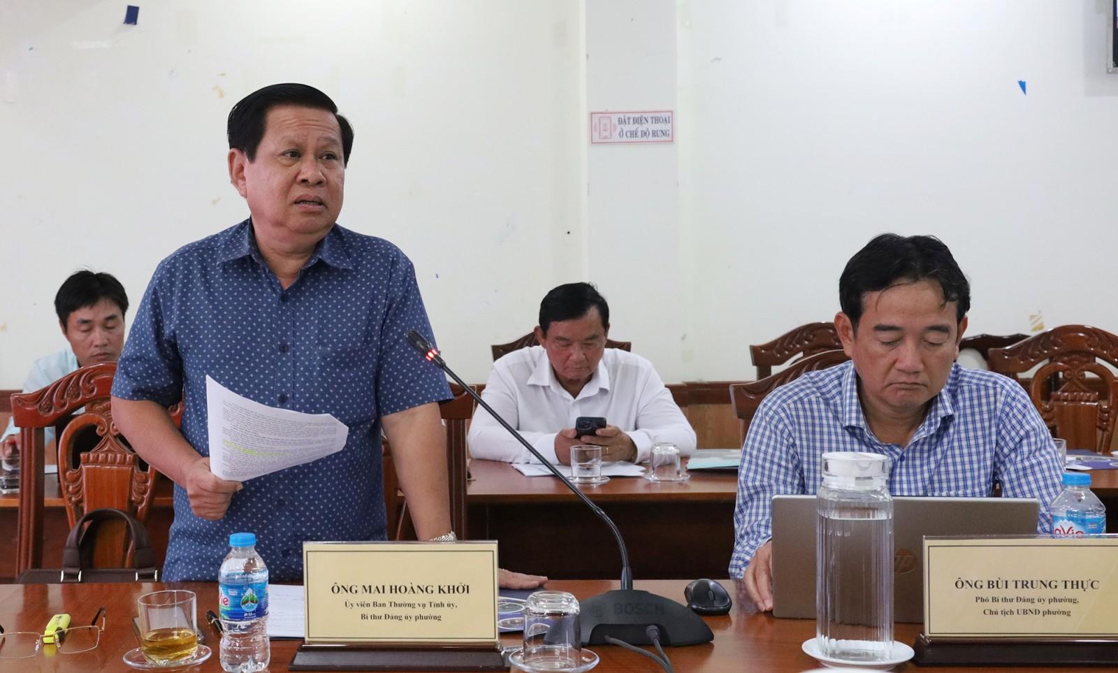 Bí thư Đảng ủy phường Rạch Giá Mai Hoàng Khởi phát biểu tại buổi kiểm tra.