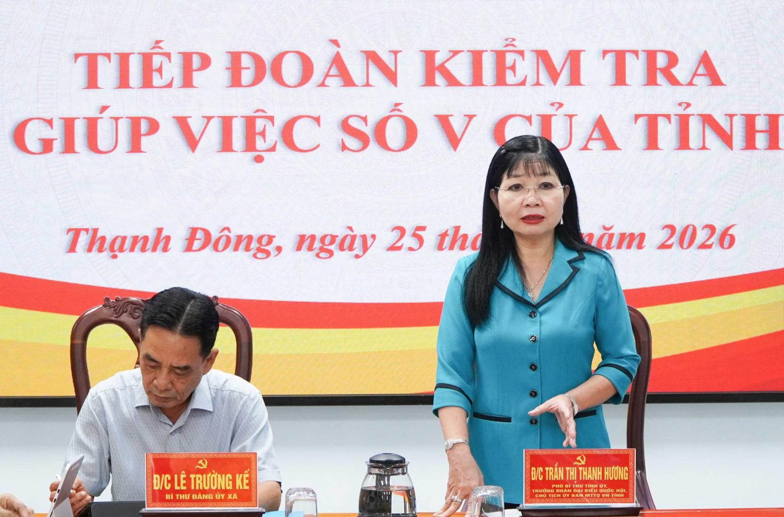 Phát biểu tại buổi làm việc, Phó Bí thư Tỉnh ủy, Chủ tịch Ủy ban MTTQ Việt Nam tỉnh An Giang Trần Thị Thanh Hương nhấn mạnh giải ngân đầu tư công là nhiệm vụ chính trị quan trọng, gắn với trách nhiệm của cả hệ thống chính trị ở cơ sở.