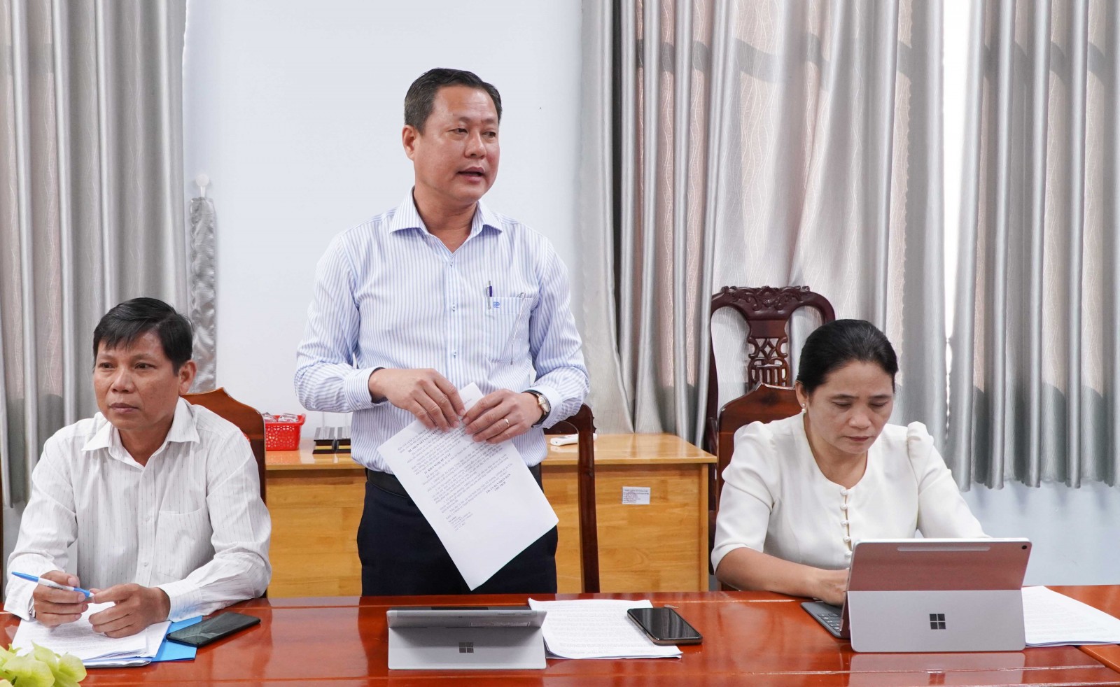 Bí thư Đảng ủy xã Thạnh Đông Lê Trường Kế báo cáo tại buổi làm việc.