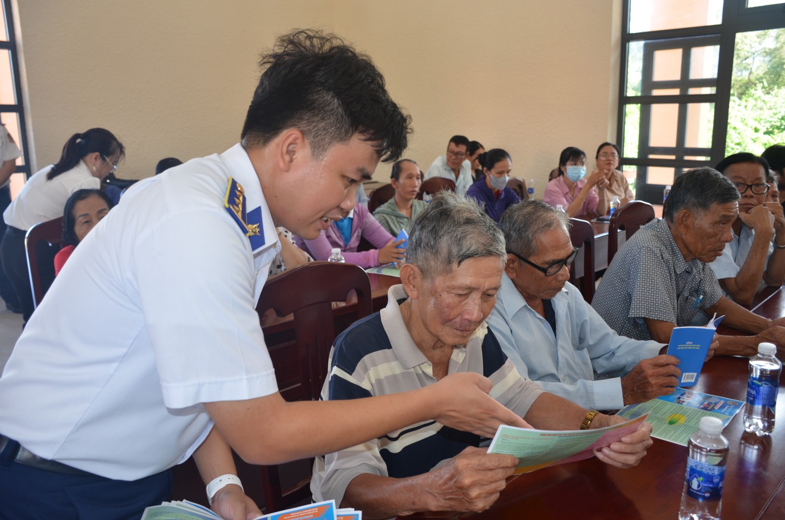 Bộ Tư lệnh Vùng Cảnh sát biển 4 phối hợp Ban Tuyên giáo và Dân vận Tinh ủy tổ chức tuyên truyền Luật Thủy sản và quy định chống khai thác IUU đến ngư dân xã Kiên Lương.