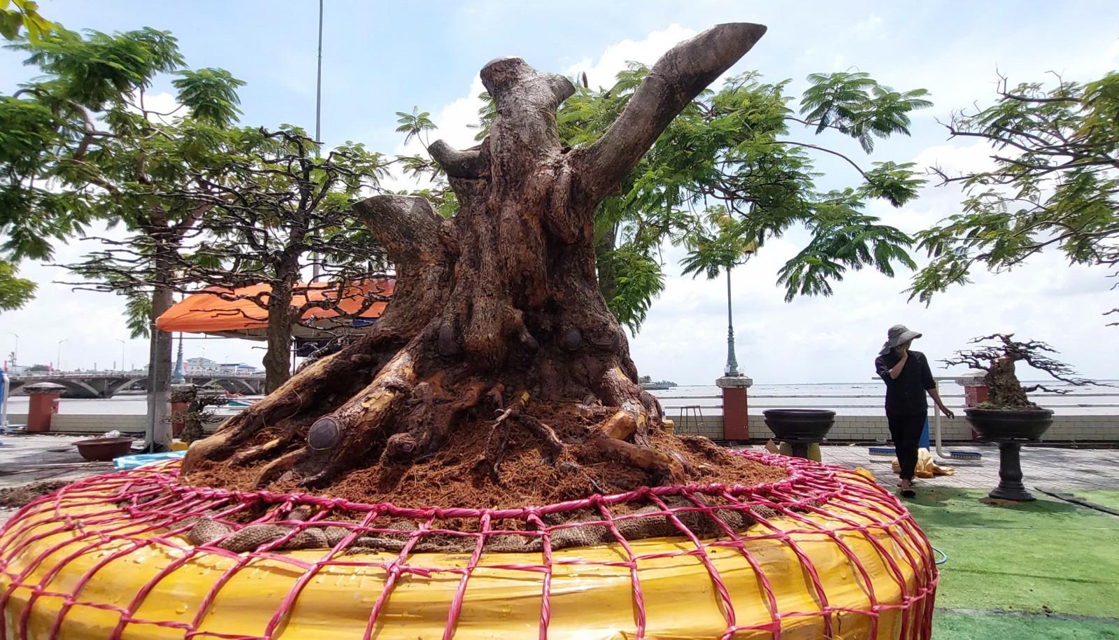 Những ngày này, khu vực công viên Trần Hưng Đạo rộn ràng không khí trưng bày, mua bán sinh vật cảnh, thu hút đông đảo người dân và du khách. Hàng trăm tác phẩm bonsai mai chiếu thủy, linh sam, mận kiểng được các nhà vườn mang đến khoe dáng. Nổi bật nhất là “cụ mai vàng trăm tuổi” đến từ Cà Mau, gốc sần sùi, tán tròn đều, khiến nhiều người trầm trồ chiêm ngưỡng.
