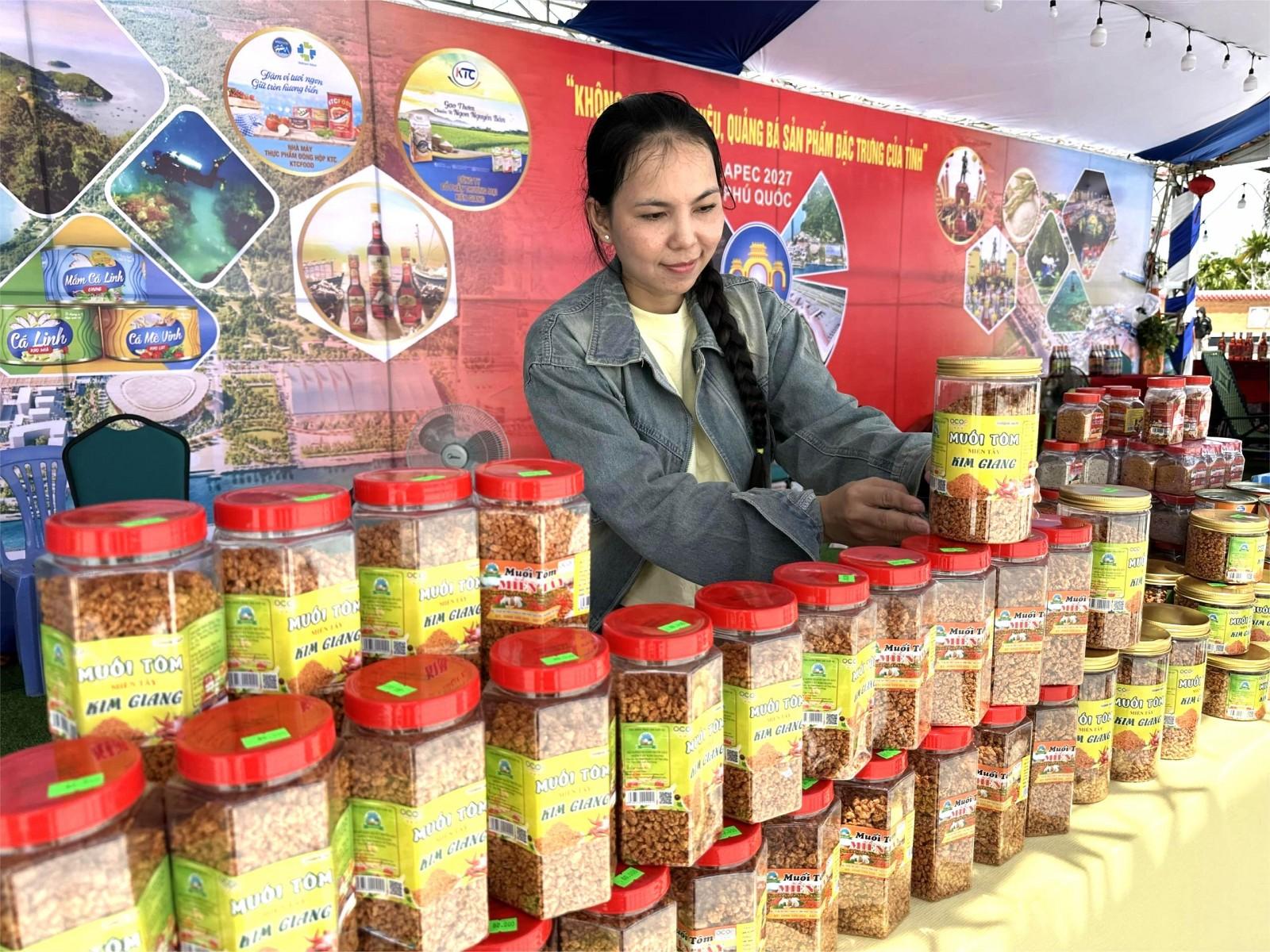 Tại gian hàng OCOP Kiên Giang, chị Nguyễn Thị Yến My, nhân viên cửa hàng cho biết, gian hàng quy tụ hơn 200 sản phẩm OCOP tiêu biểu từ các xã, phường, đặc khu trong tỉnh và các sản phẩm đặc trưng của An Giang. Khách tham quan vừa được thưởng thức vừa có thể mua mang về làm quà.
