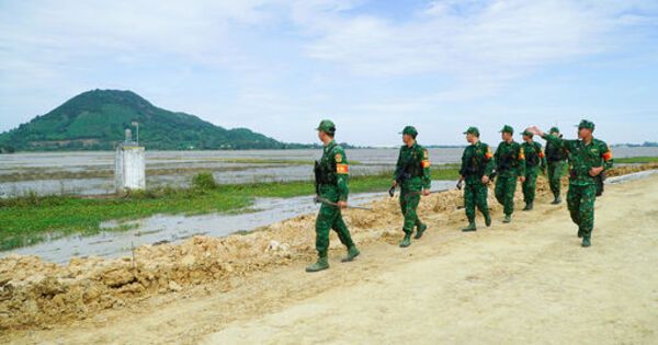 Cán bộ, chiến sĩ Đồn Biên phòng Cửa khẩu quốc tế Tịnh Biên tuần tra khu vực biên giới. Ảnh: THU OANH