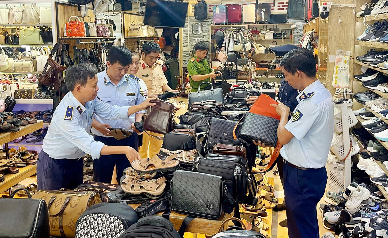 Lực lượng quản lý thị trường kiểm tra hàng. Ảnh: Ban Chỉ đạo 389 cung cấp.