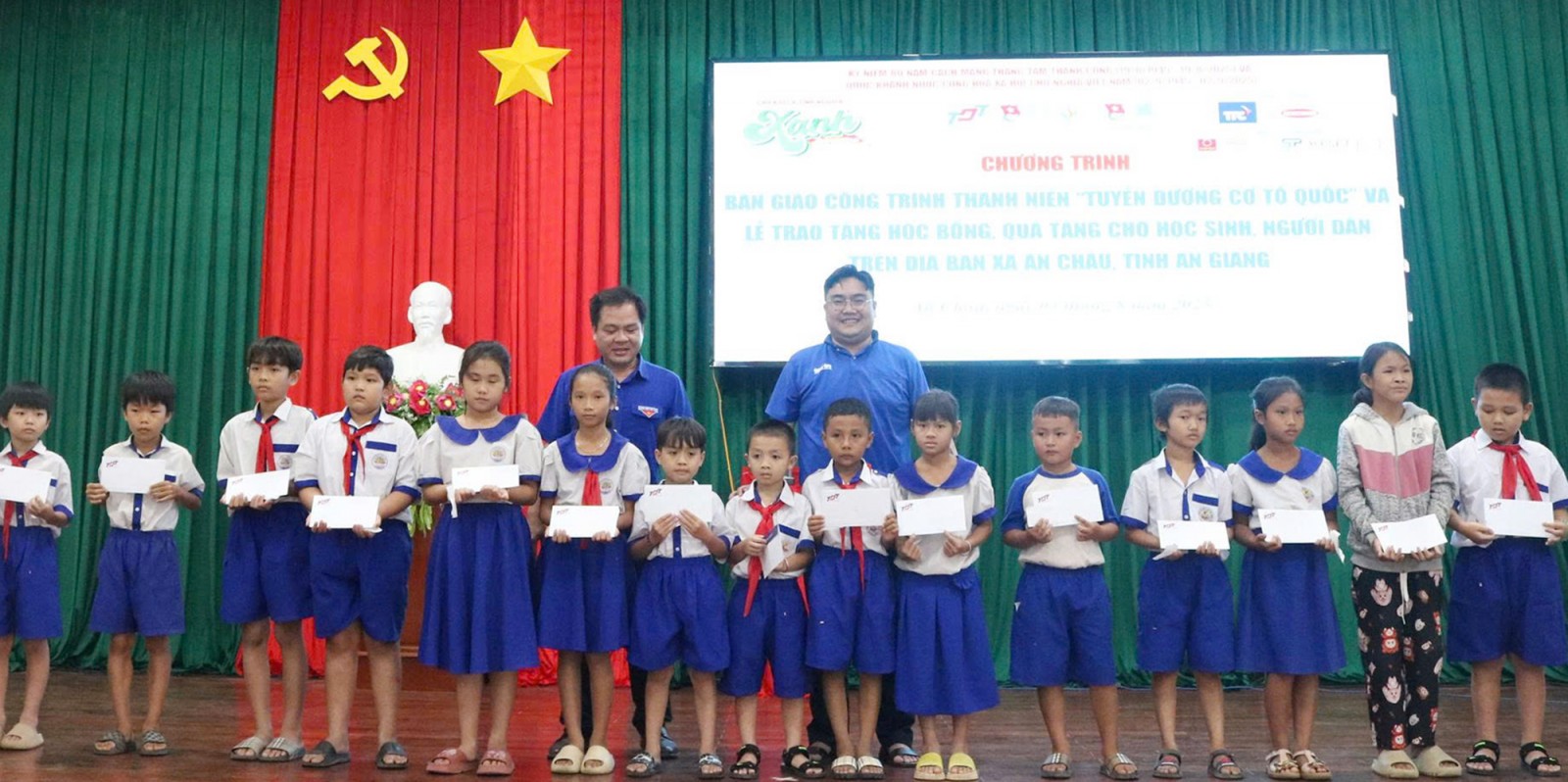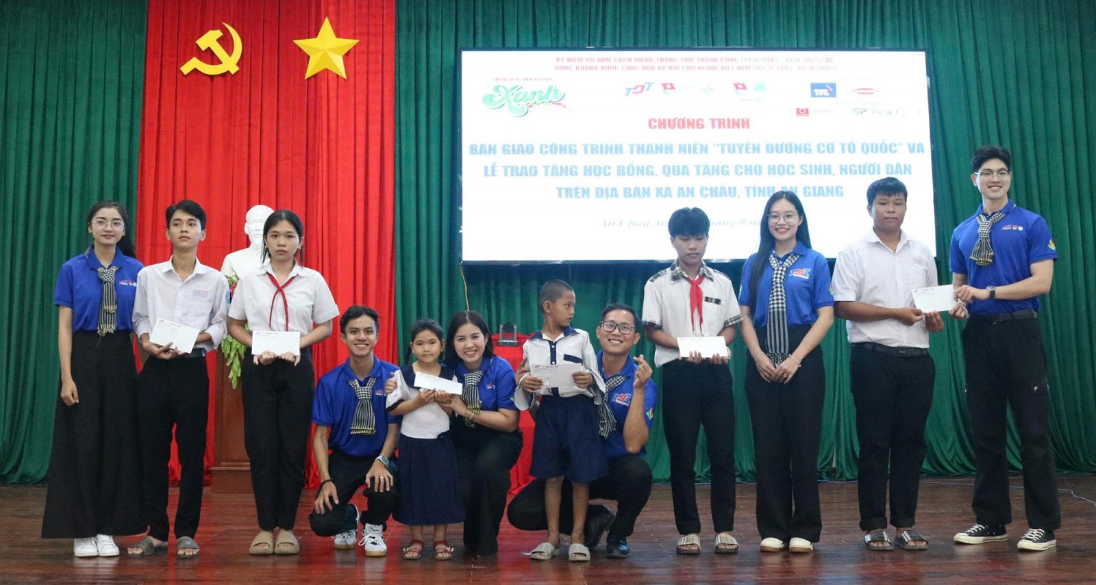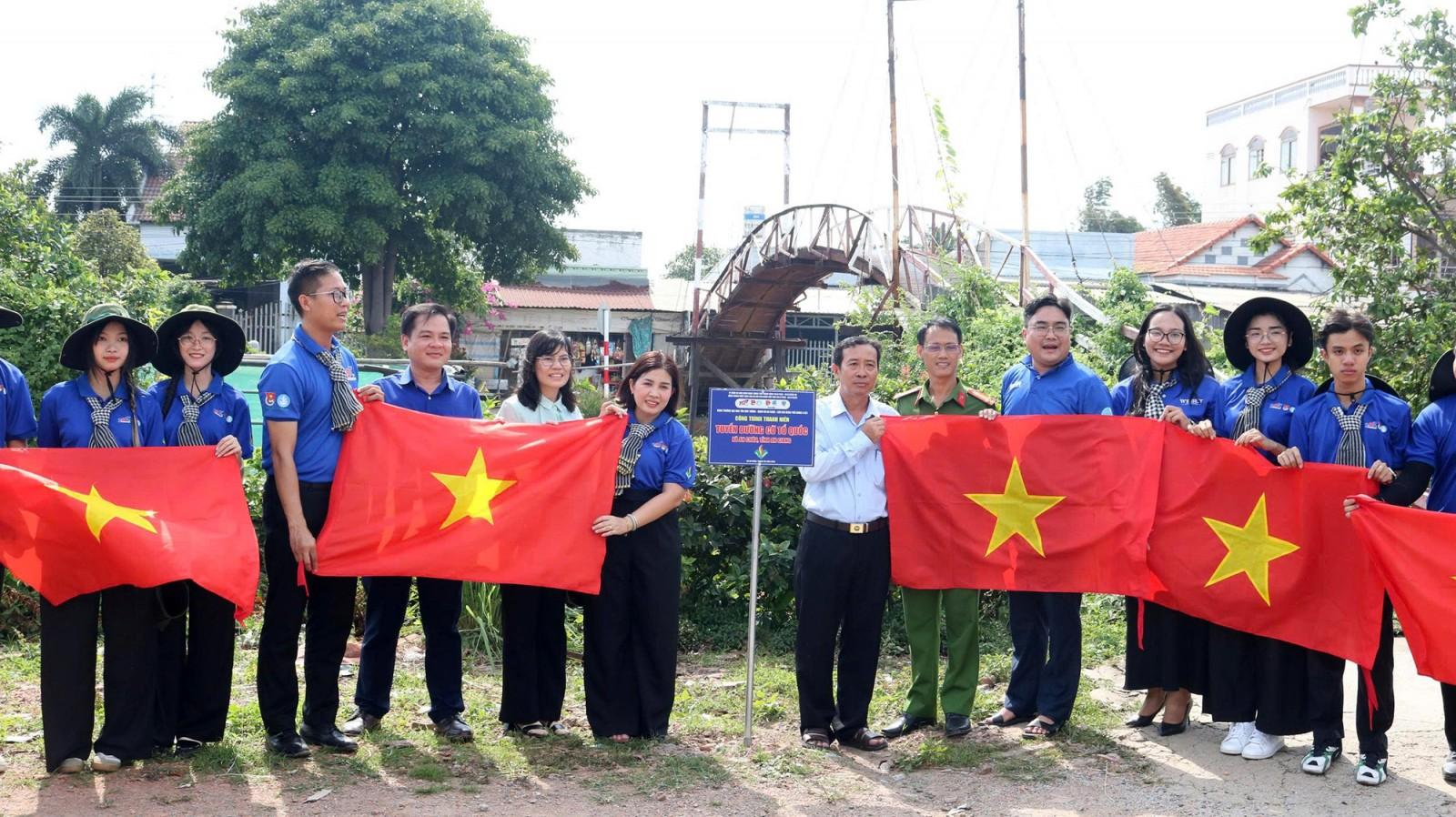 Đội sinh viên tình nguyện Trường Đại học Tôn Đức Thắng bàn giao công trình “Tuyến đường cờ Tổ quốc”.