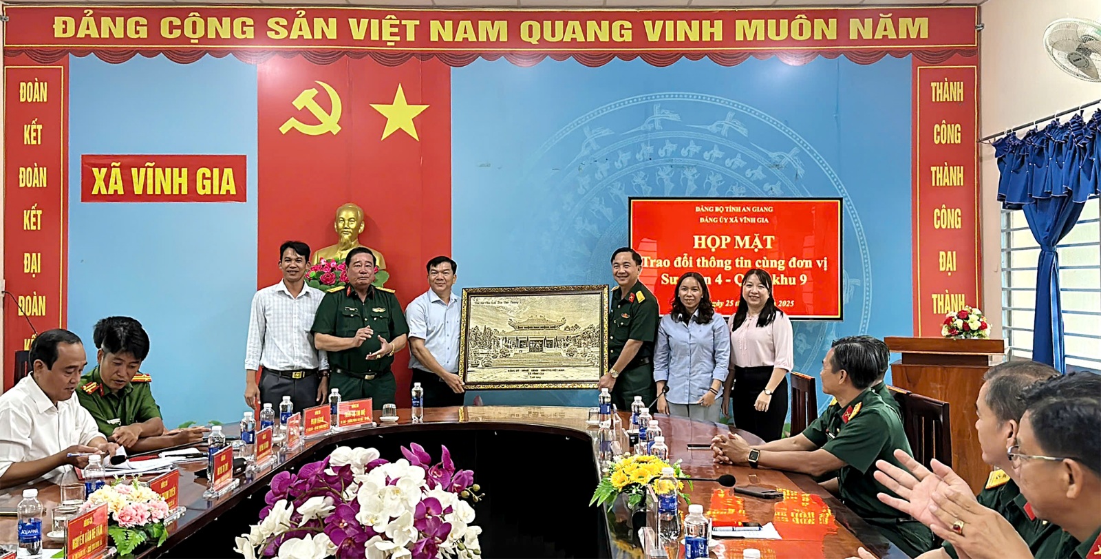 Chiều 25/9, Đại tá Bùi Văn Minh, Bí thư Đảng ủy, Chính ủy Sư đoàn 4, Quân khu 9 dẫn đầu đoàn công tác đã đến họp mặt, trao đổi thông tin cùng Đảng ủy xã Vĩnh Gia. Bí thư Đảng ủy, Chủ tịch HĐND xã Vĩnh Gia Nguyễn Văn Bé Tám tiếp và làm việc với đoàn.