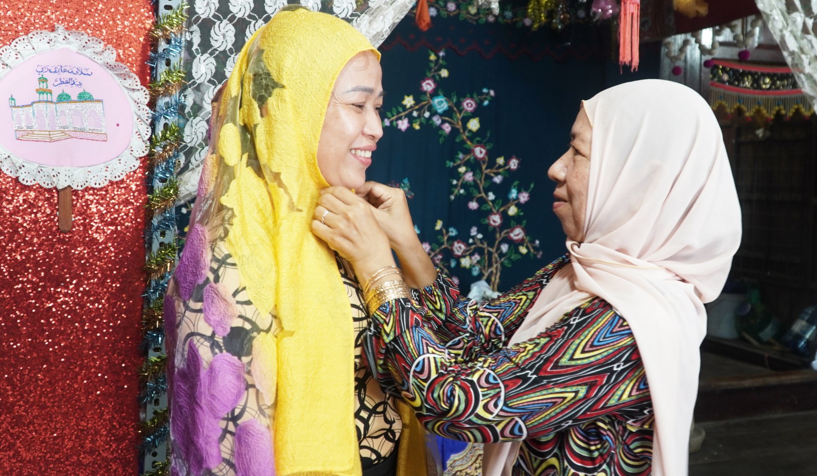 Vượt gần 100 cây số, chúng tôi tìm đến xã Châu Phong. Mờ sáng ở ấp Phũm Soài, trong căn nhà sàn thoáng đãng, tiếng lách cách của khung cửi vang đều, dệt nên sắc màu của bao thế hệ. Hơn 20 năm qua, bà Hasanad vẫn cần mẫn bên khung dệt, đôi tay thoăn thoắt tạo thành những sản phẩm thổ cẩm đa sắc. Bà Hasanad kể, ngày trước nghề dệt chỉ để giữ lấy nếp xưa của ông bà, sản phẩm làm ra bán trong xóm, thu nhập chẳng đáng bao nhiêu. Vài năm trở lại đây, nhờ sự hỗ trợ của địa phương trong việc quảng bá, đưa sản phẩm đến hội chợ và kết nối với khách du lịch, làng nghề bắt đầu khởi sắc. “Nhờ nghề dệt, gia đình tôi có thu nhập ổn định, con cái được học hành đến nơi đến chốn. Điều quý nhất là bà con trong làng giữ được nghề của cha ông”, bà Hasanad cười rạng rỡ.