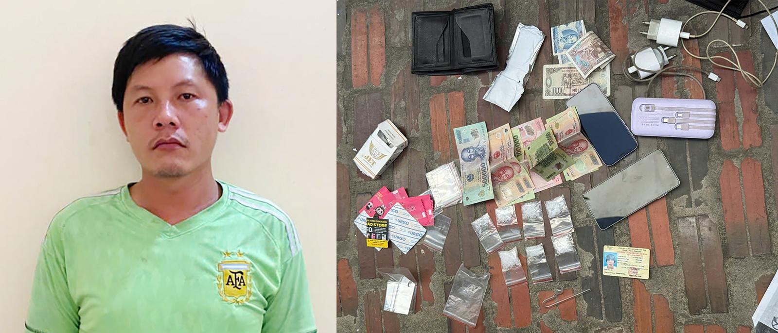 Khi đến khu vực ấp Long Hòa 2, lực lượng phát hiện, bắt quả tang đối tượng Nhựt đang cất giấu trong người 7 bọc nylon trong suốt, bên trong có chứa tinh thể màu trắng nghi là ma túy.