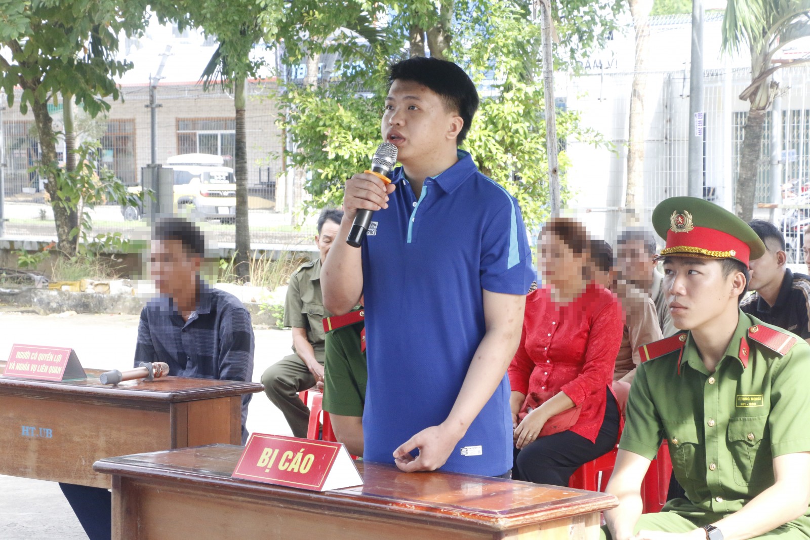 Bị cáo Trần Quốc Toản tại phiên tòa xét xử lưu động tại Trung tâm Văn hóa, Thể thao và Truyền thanh xã An Minh.