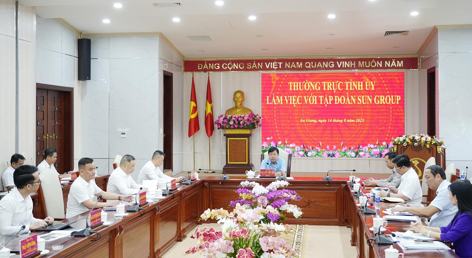 Tập đoàn Sun Group đề nghị Thường trực Tỉnh ủy An Giang chỉ đạo đẩy nhanh hoàn thiện pháp lý để nhà đầu tư, nhà thầu đủ điều kiện giải ngân vốn đầu tư.