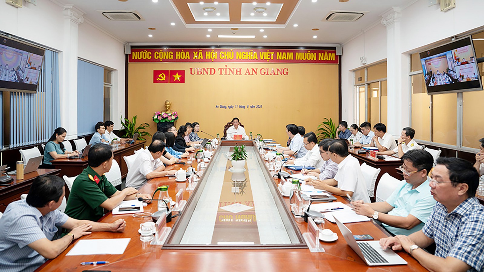 Tại cuộc họp, đại diện Tập đoàn Vingroup - Công ty CP và lãnh đạo các sở, ngành tỉnh cùng lãnh đạo UBND tỉnh An Giang đã trao đổi, đề xuất giải pháp tháo gỡ khó khăn, vướng mắc phát sinh tại các dự án Tập đoàn Vingroup đang triển khai trên địa bàn tỉnh và việc đầu thực hiện Đề án chuyển đổi xanh của Tập đoàn Vingroup - Công ty CP tại tỉnh.