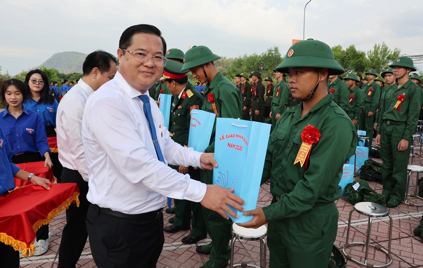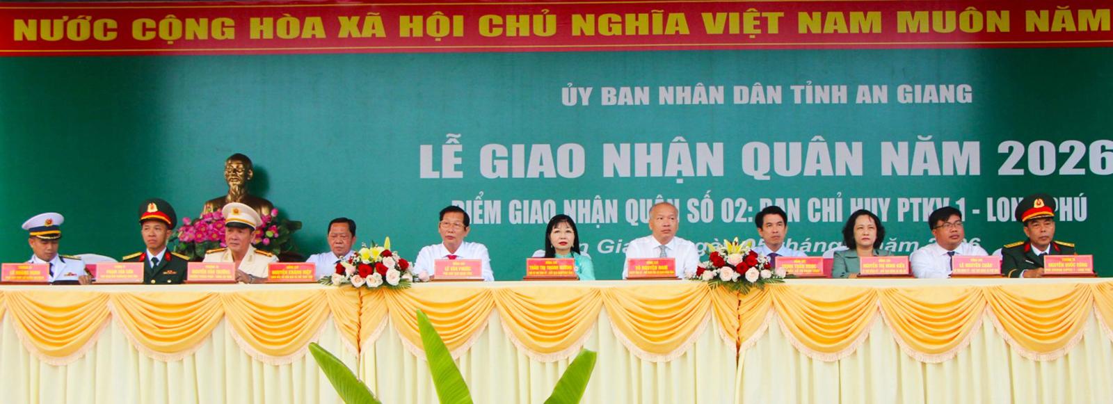 Dự lễ giao nhận quân năm 2026 tại điểm giao nhận quân số 1: Ban Chỉ huy phòng thủ Khu vực 1 - Long Phú có Phó Bí thư Tỉnh ủy An Giang Lâm Minh Thành; Ủy viên Ban Thường vụ Tỉnh ủy, Phó Chủ tịch Thường trực Ủy ban MTTQ Việt Nam tỉnh An Giang Lê Thanh Việt; Phó Chủ tịch UBND tỉnh An Giang Nguyễn Thị Minh Thúy; đại diện lãnh đạo các sở, ban, ngành, đoàn thể tỉnh; các đơn vị nhận quân; các đồng chí trong Hội đồng Nghĩa vụ quân sự tỉnh; cấp ủy, chính quyền các địa phương cùng gia đình các thanh niên.