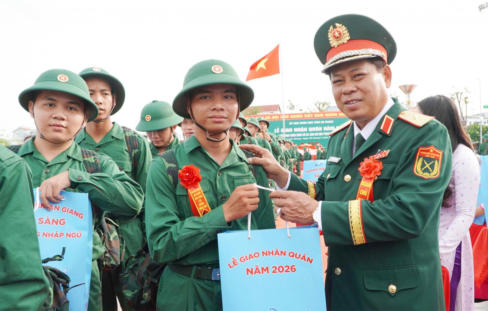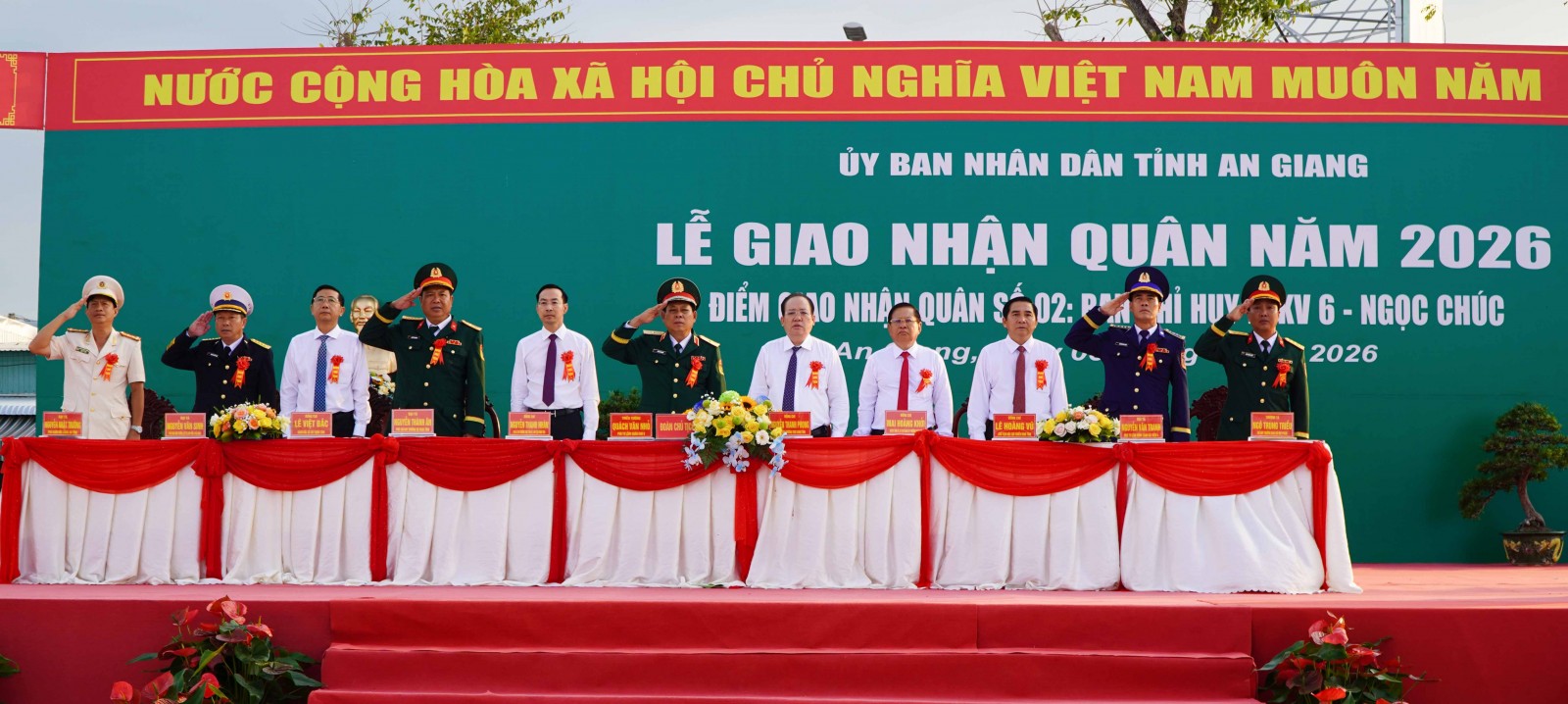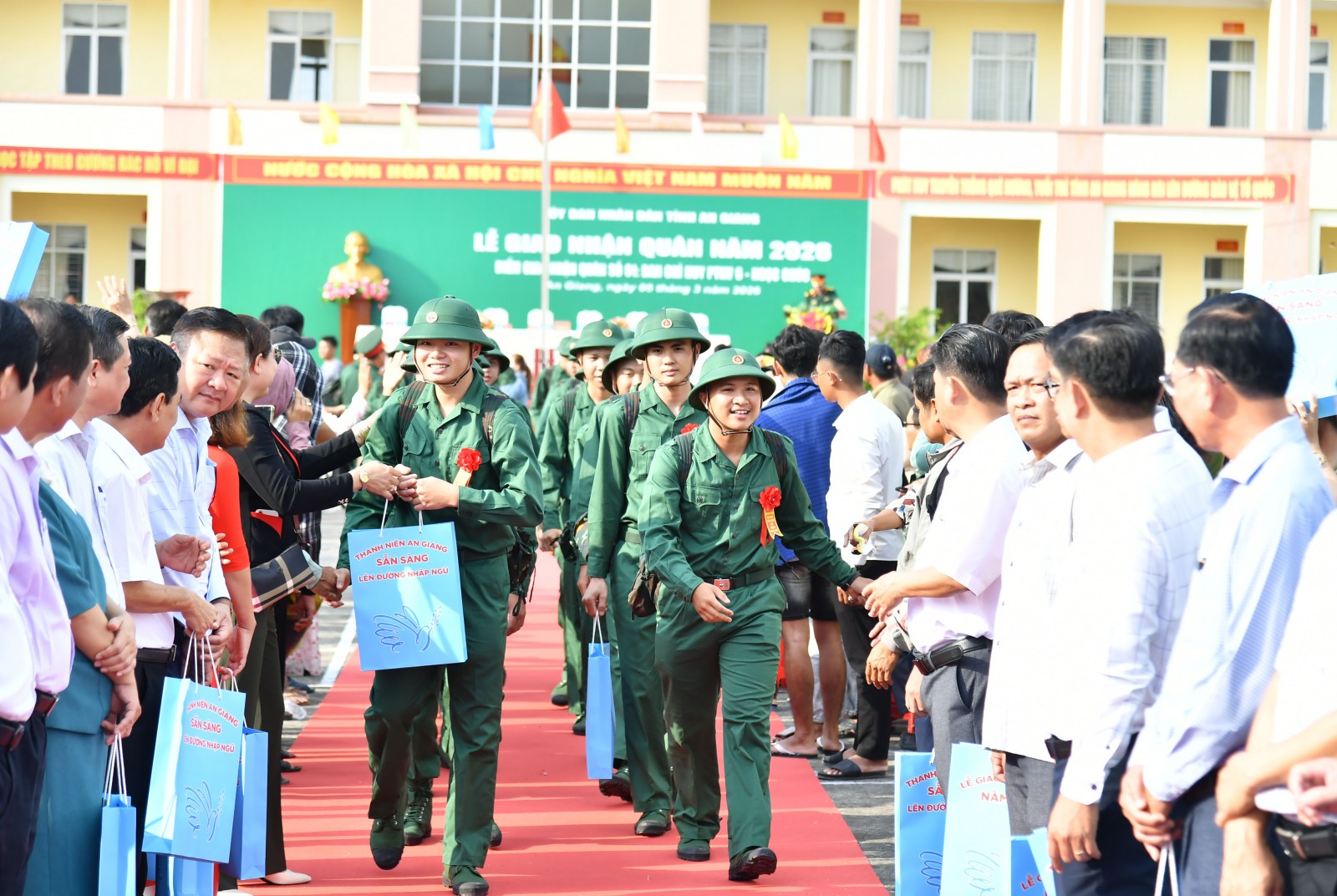 Năm 2026, tỉnh An Giang tuyển chọn và gọi công dân nhập ngũ, giao cho Bộ Tư lệnh Vùng 5 Hải quân, Bộ Tư lệnh Vùng Cảnh sát biển 4, Bộ Chỉ huy Quân sự tỉnh An Giang, Ban Chỉ huy Bộ đội Biên phòng tỉnh An Giang và các đơn vị: Lữ đoàn 950, Sư đoàn 330, Lữ đoàn 6, Lữ đoàn 962 thuộc Quân khu 9.