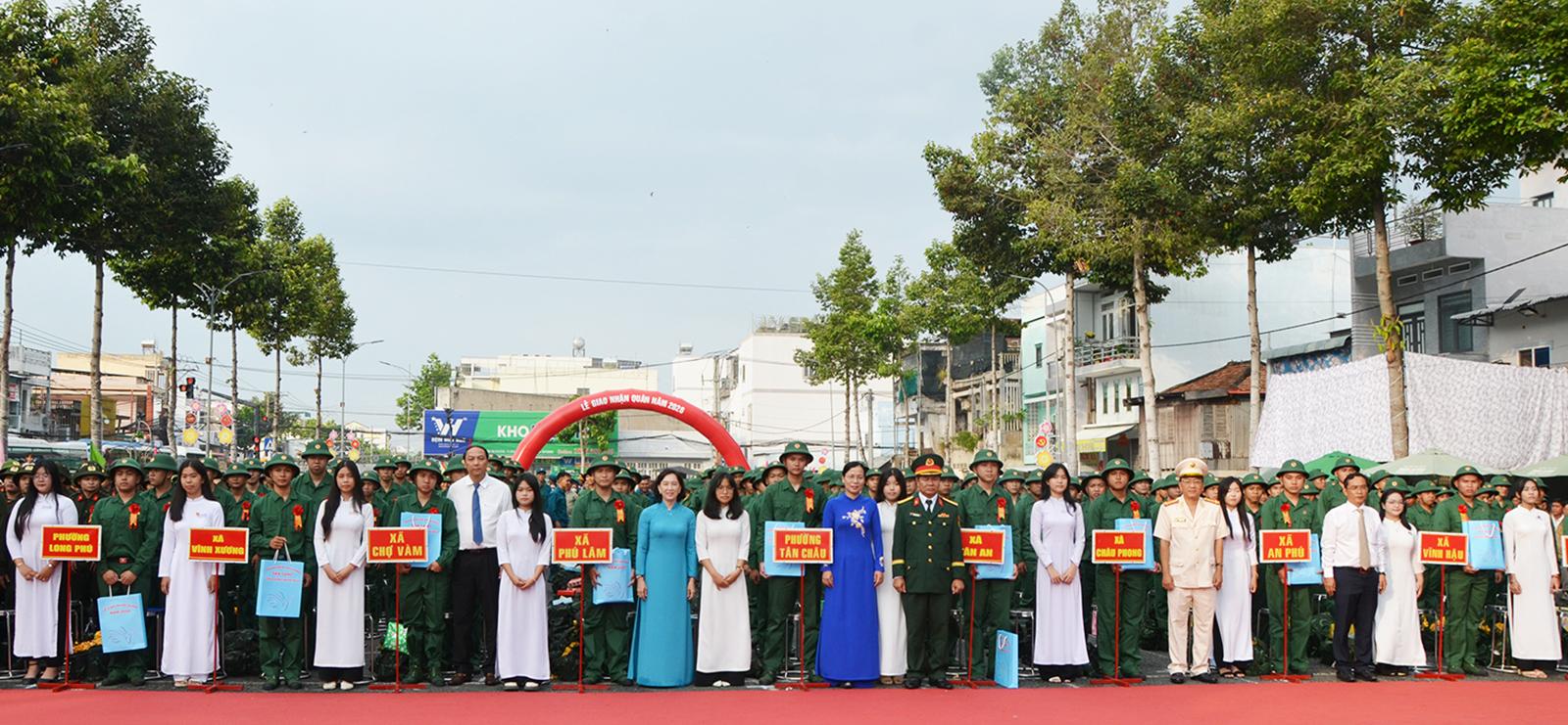 Dự lễ tại điểm giao nhận quân số 1: Ban Chỉ huy phòng thủ Khu vực 2 - Long Xuyên có các đồng chí: Thượng tướng Nguyễn Văn Gấu, Ủy viên Ban Chấp hành Trung ương Đảng, Ủy viên Quân ủy Trung ương, Thứ trưởng Bộ Quốc phòng; Trung tướng Nguyễn Xuân Dắt, Phó Bí thư Đảng ủy, Tư lệnh Quân khu 9; Ủy viên Ban Chấp hành Trung ương Đảng, Phó Bí thư Tỉnh ủy, Chủ tịch UBND tỉnh An Giang, Chủ tịch Hội đồng Nghĩa vụ quân sự tỉnh Hồ Văn Mừng; Ủy viên Ban Thường vụ Tỉnh ủy, Phó Chủ tịch Thường trực HĐND tỉnh Lê Hồng Thắm; Thiếu tướng Nguyễn Văn Ngành, Ủy viên Ban Thường vụ Tỉnh ủy, Chỉ huy trưởng Bộ Chỉ huy Quân sự tỉnh, Phó Chủ tịch Thường trực Hội đồng Nghĩa vụ quân sự tỉnh; lãnh đạo các sở, ban, ngành tỉnh, các địa phương và đại diện các đơn vị nhận quân.