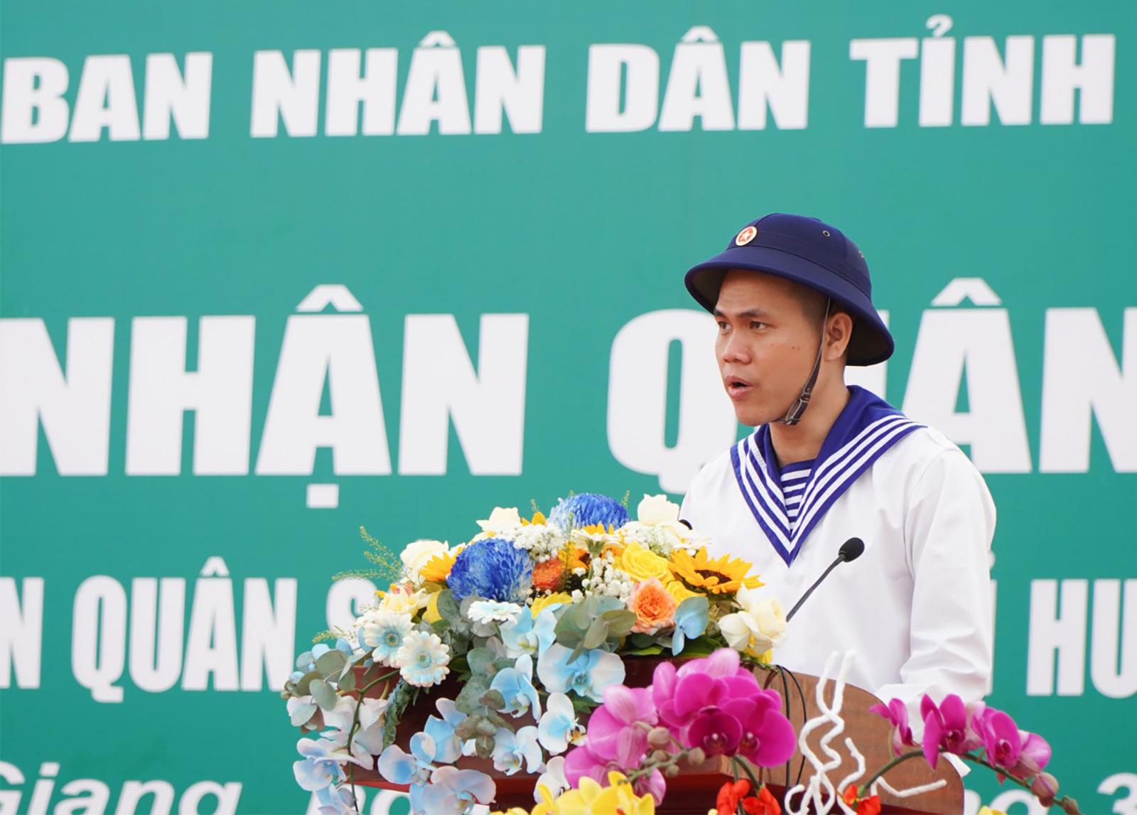 Phát biểu tại buổi lễ, Thiếu tướng Nguyễn Văn Hận, Ủy viên Ban Thường vụ Tỉnh ủy, Giám đốc Công an tỉnh nhấn mạnh An Giang là vùng đất giàu truyền thống yêu nước, cách mạng. Qua các thời kỳ, nhiều thế hệ con em của tỉnh đã anh dũng chiến đấu, lập nên những chiến công vẻ vang trong sự nghiệp xây dựng và bảo vệ Tổ quốc. Phát huy truyền thống đó, những năm qua, tỉnh luôn hoàn thành 100% chỉ tiêu giao quân; nhiều thanh niên sau khi hoàn thành nghĩa vụ đã trưởng thành, đóng góp tích cực vào sự phát triển kinh tế - xã hội địa phương.