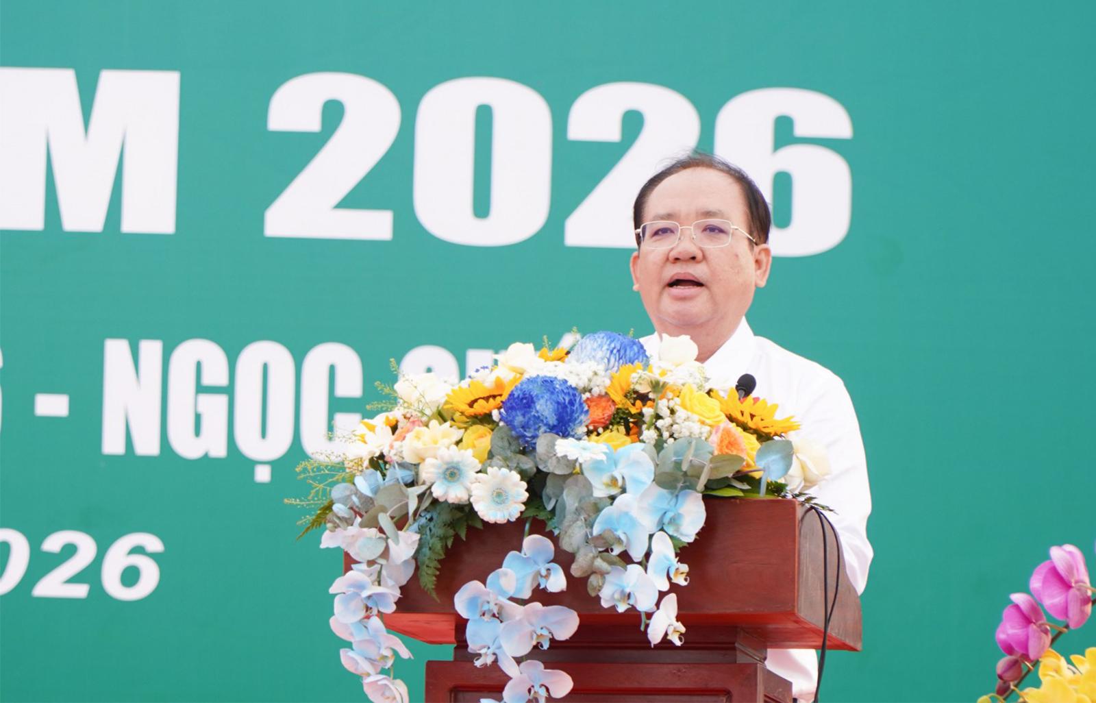 Ủy viên Ban Chấp hành Trung ương Đảng, Phó Bí thư Tỉnh ủy, Chủ tịch UBND tỉnh An Giang, Chủ tịch Hội đồng Nghĩa vụ quân sự tỉnh Hồ Văn Mừng phát biểu động viên thanh niên.