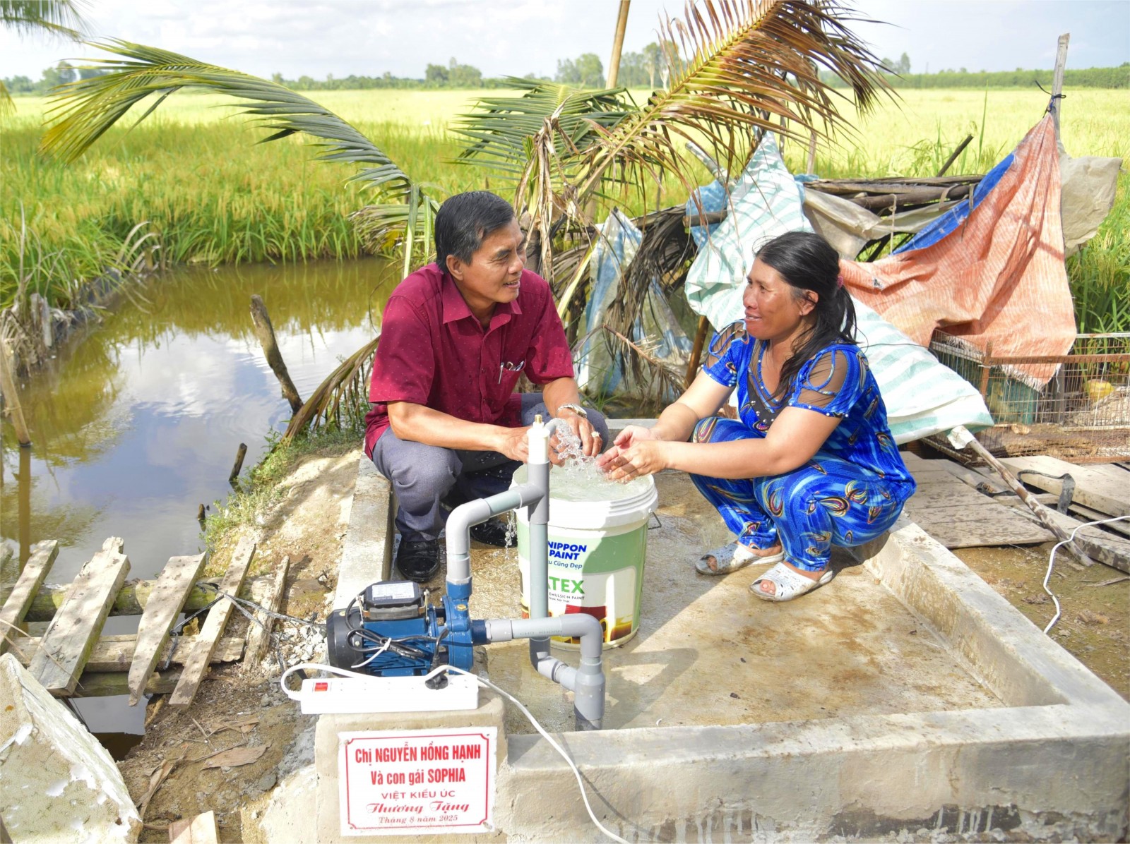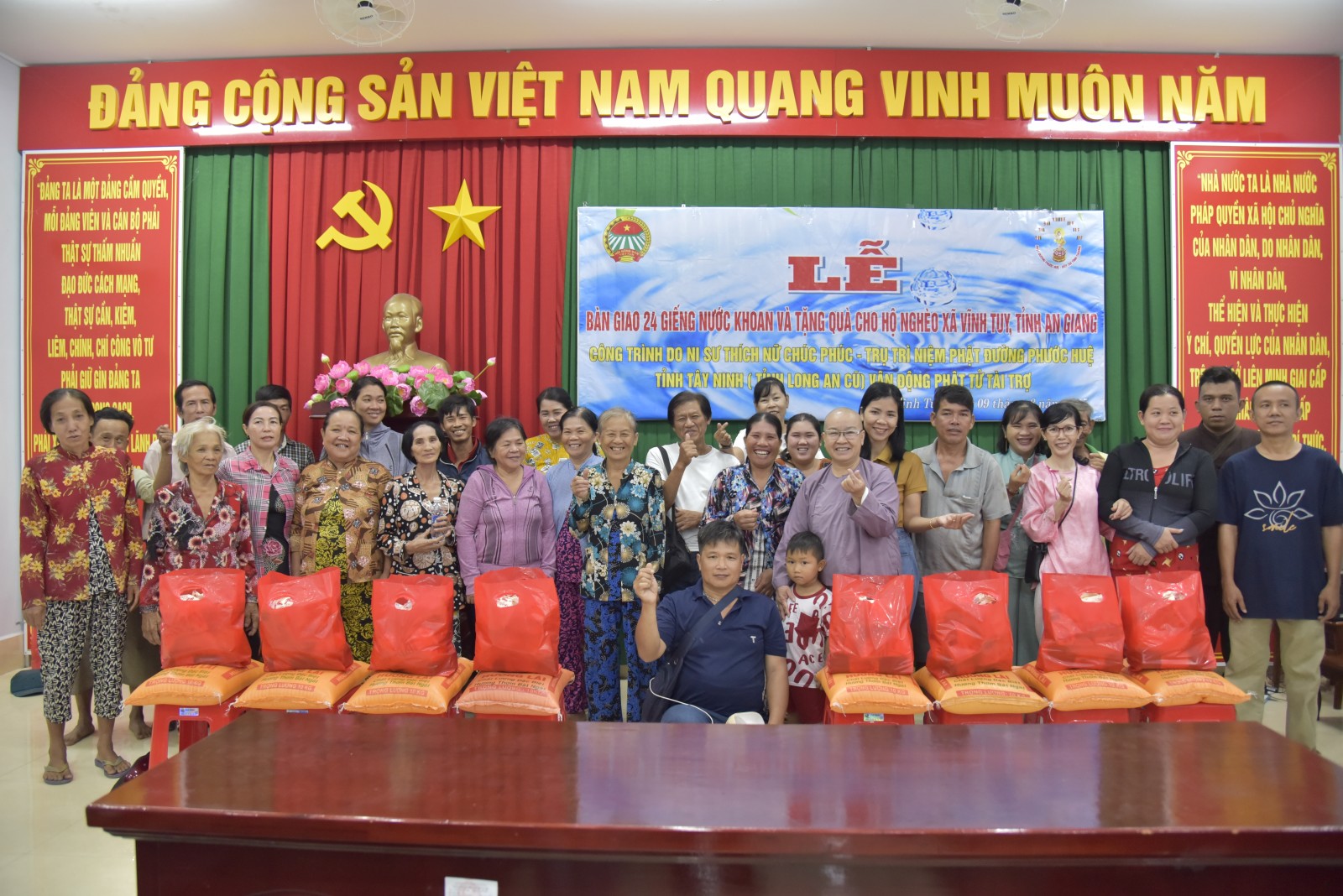 Hộ nghèo xã Vĩnh Tuy được tặng quà và giếng nước hợp vệ sinh.