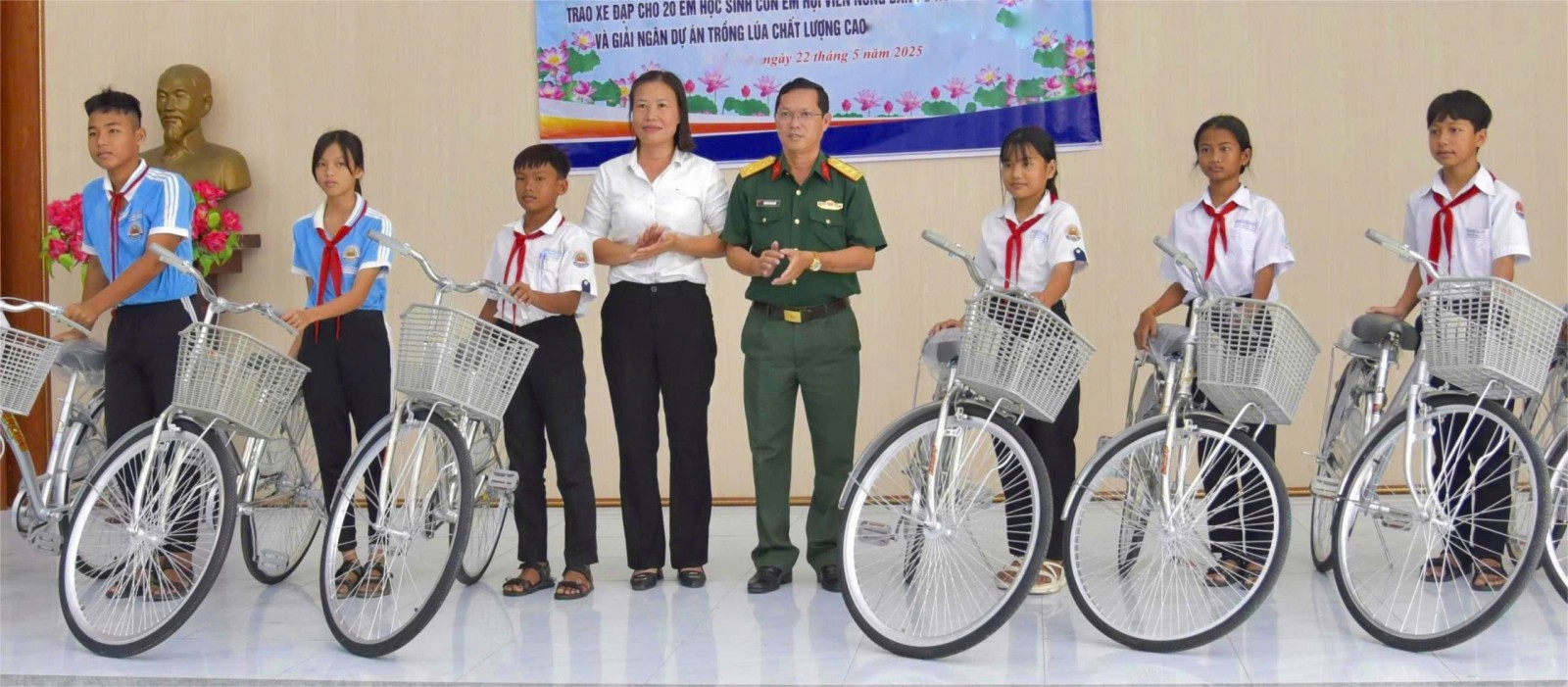 Học sinh nghèo vượt khó học giỏi ở xã Hòn Đất được tặng xe đạp đầu năm học mới.