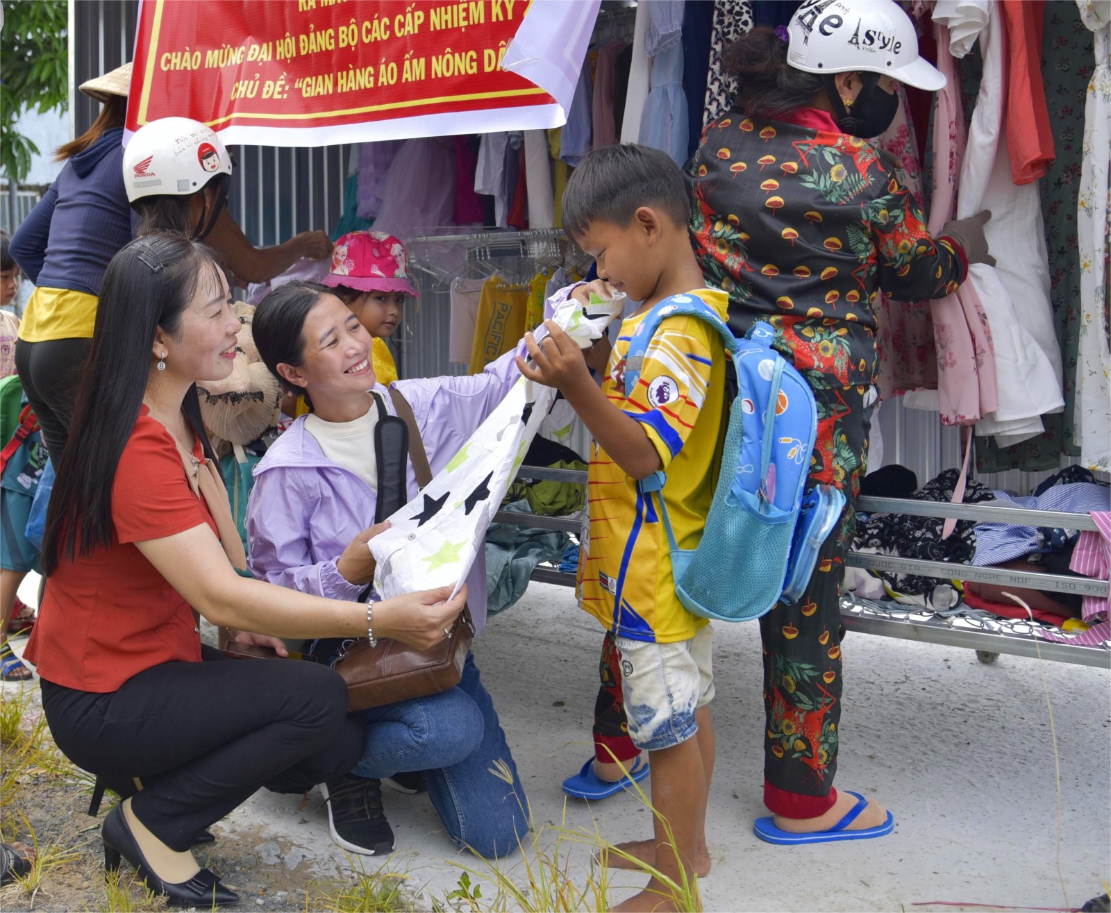 Hội Nông dân xã Mỹ Thuận ra mắt gian hàng “Áo ấm nông dân”.