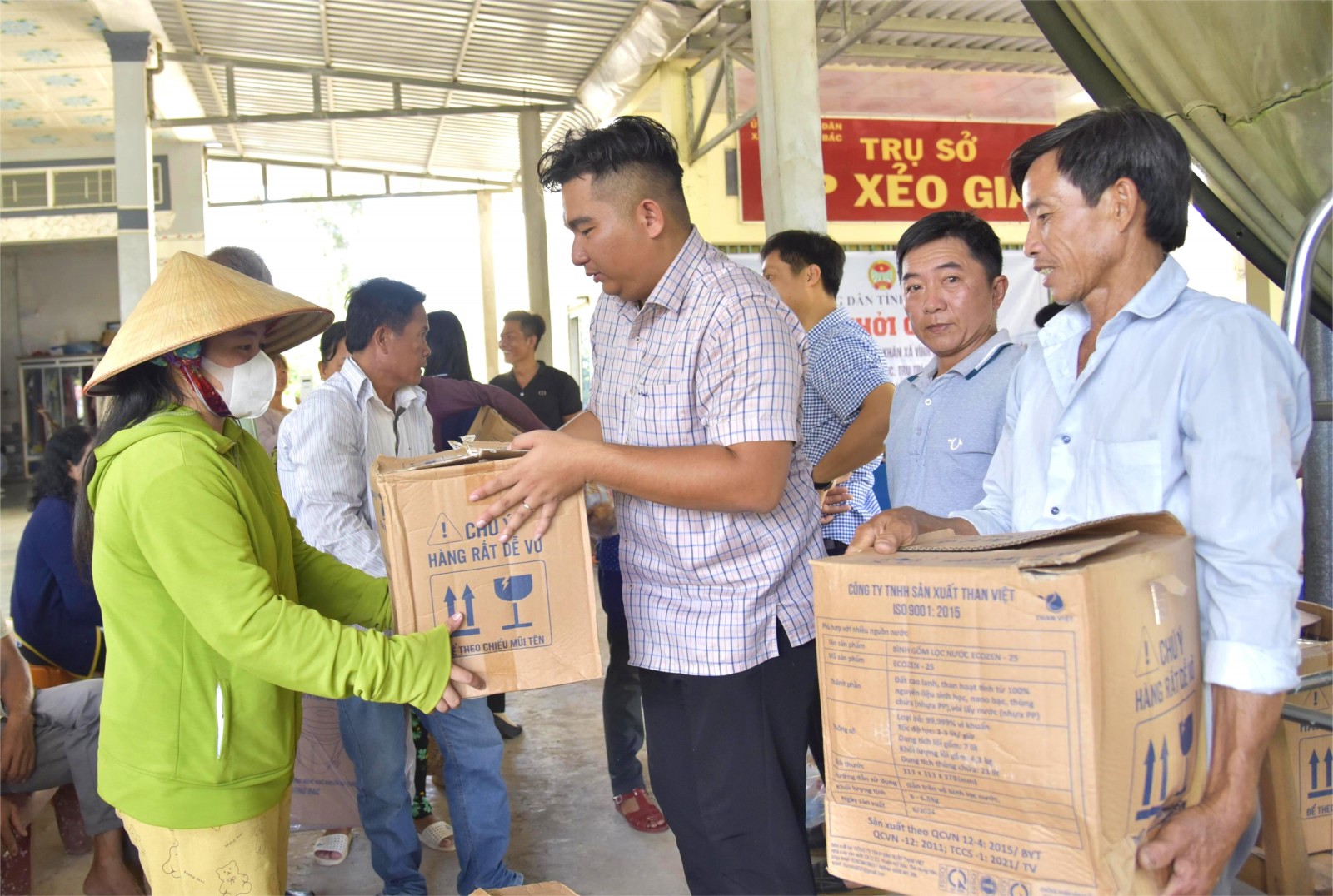 Nông dân thuộc diện hộ nghèo xã Vĩnh Bình được Hội Nông dân tỉnh An Giang phối hợp Hội Chữ thập đỏ tỉnh tặng bình lọc nước công nghệ nano.