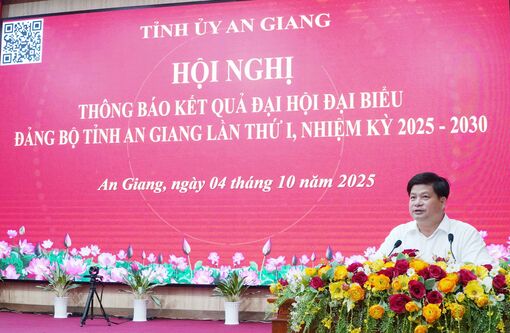 Sáng 4/10, Ban Thường vụ Tỉnh ủy An Giang tổ chức hội nghị trực tiếp kết hợp với trực tuyến thông báo nhanh kết quả Đại hội đại biểu Đảng bộ tỉnh An Giang lần thứ I, nhiệm kỳ 2025 - 2030.